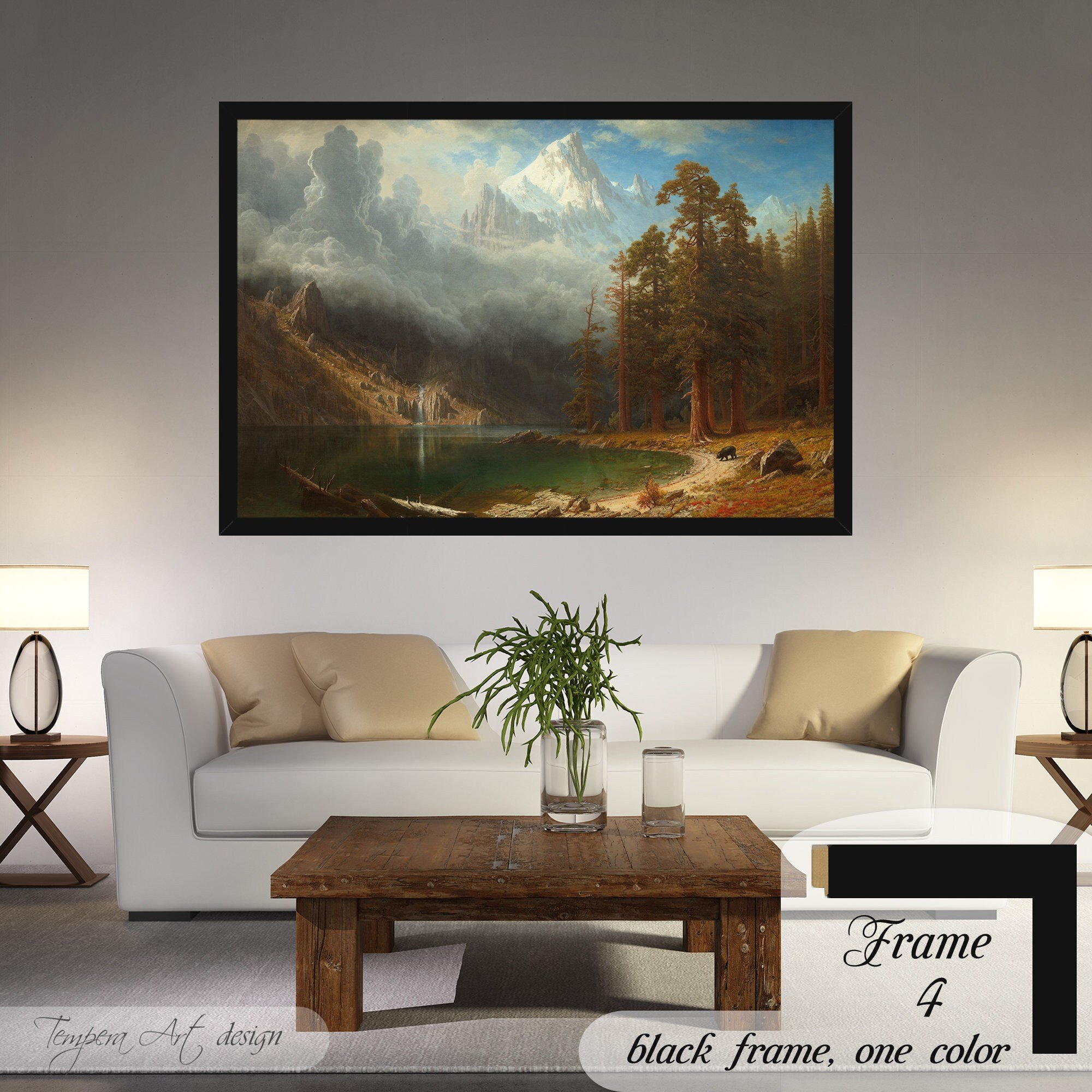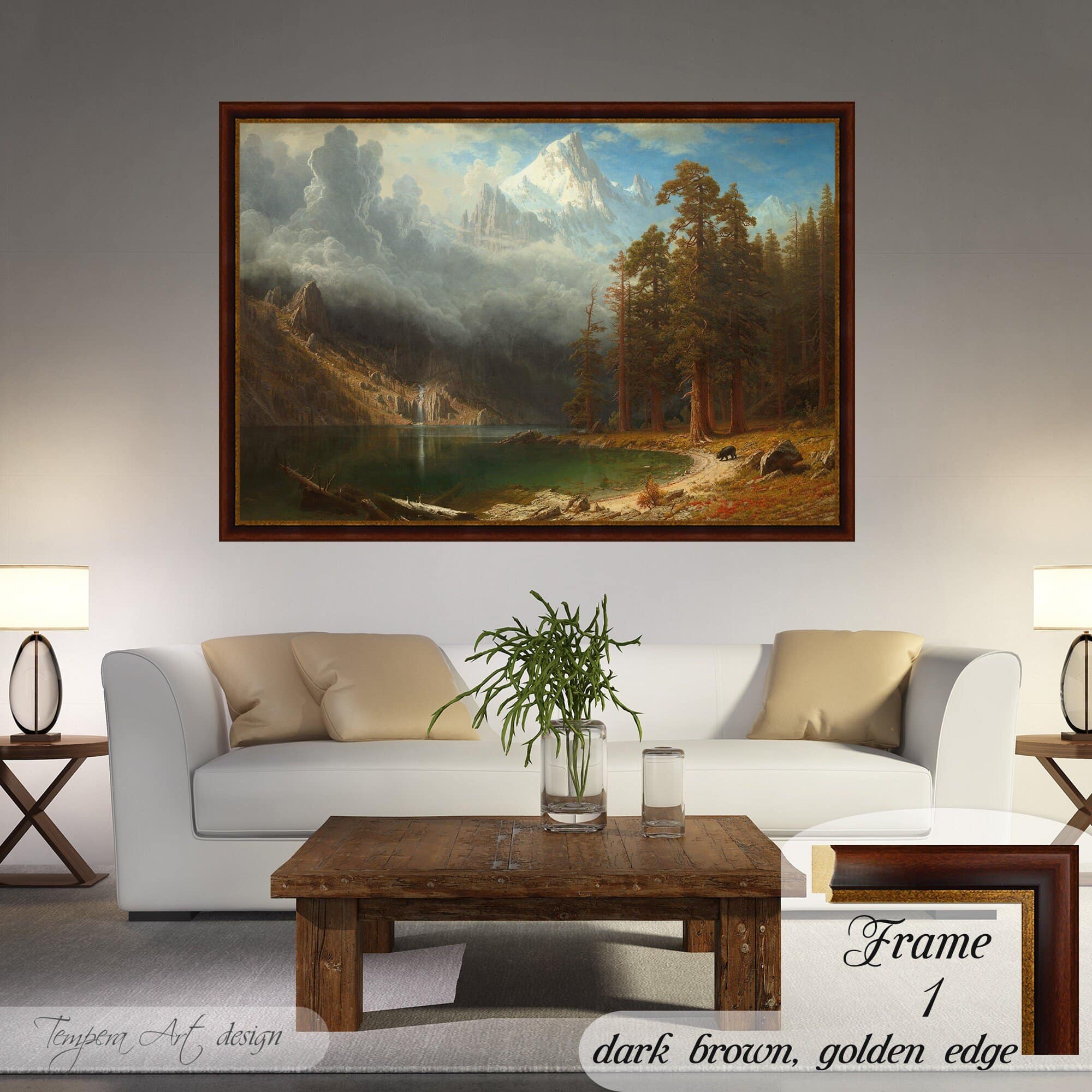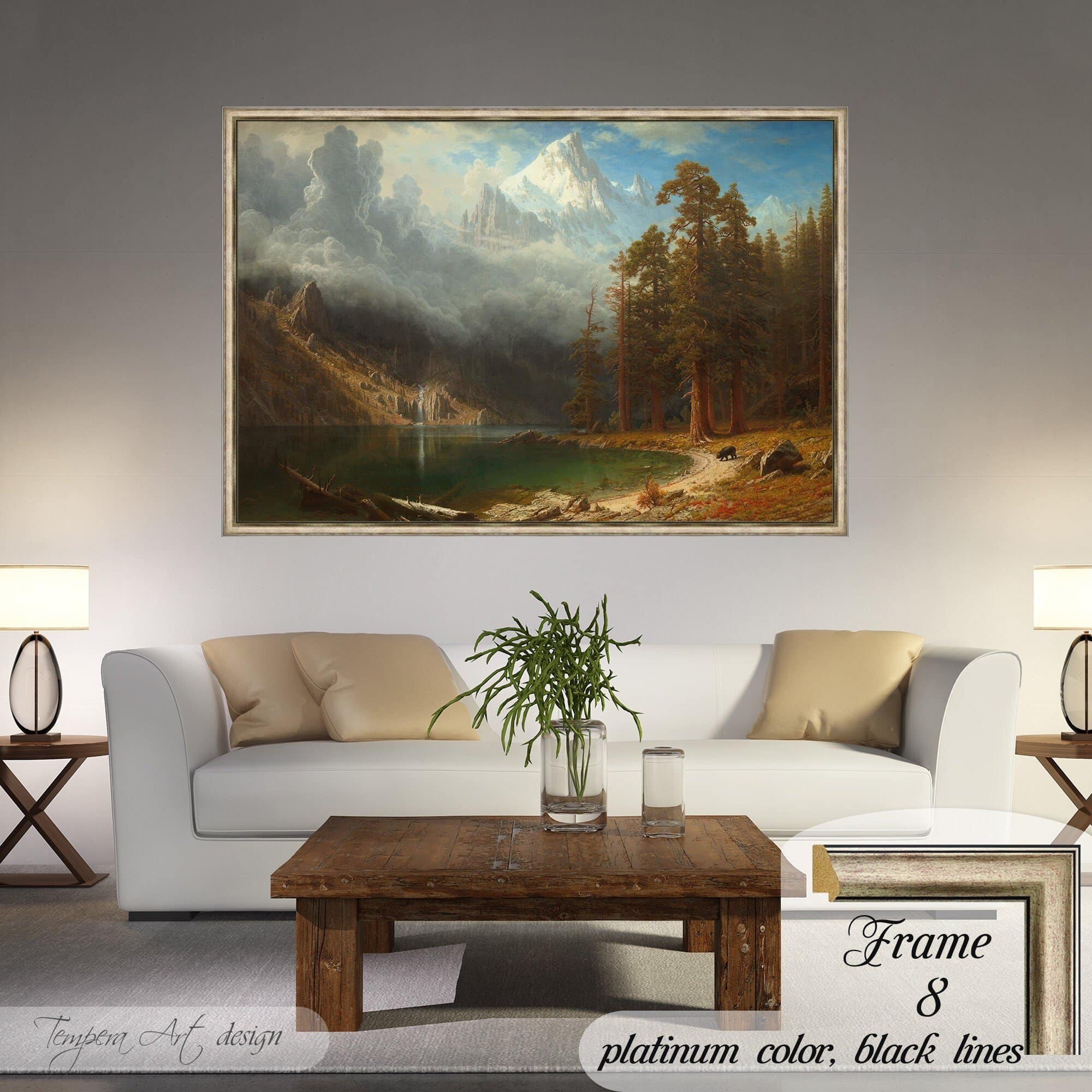 Albert Bierstadt “Mount Corcoran” print on canvas offered with different wooden frames or as an unframed wall art decor.