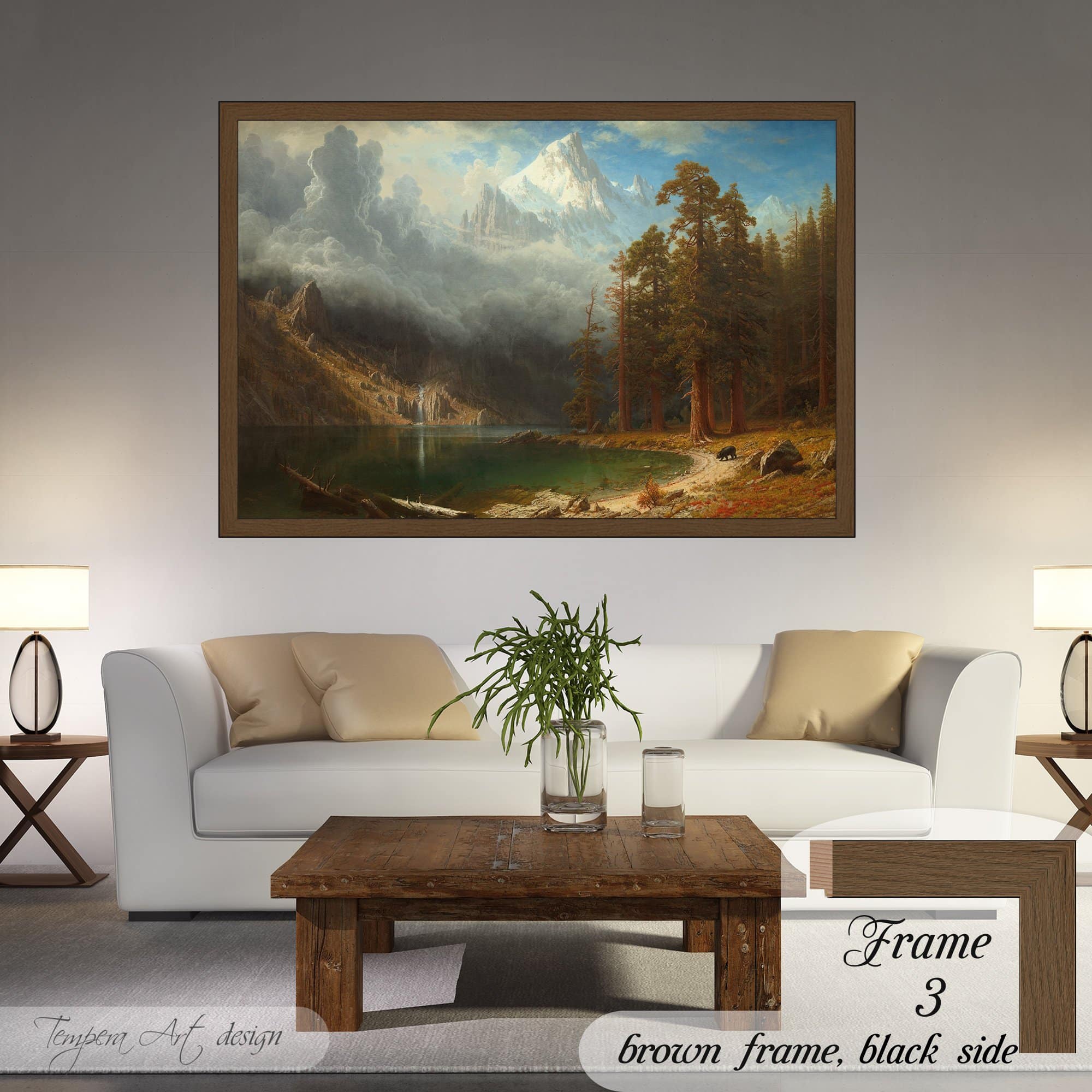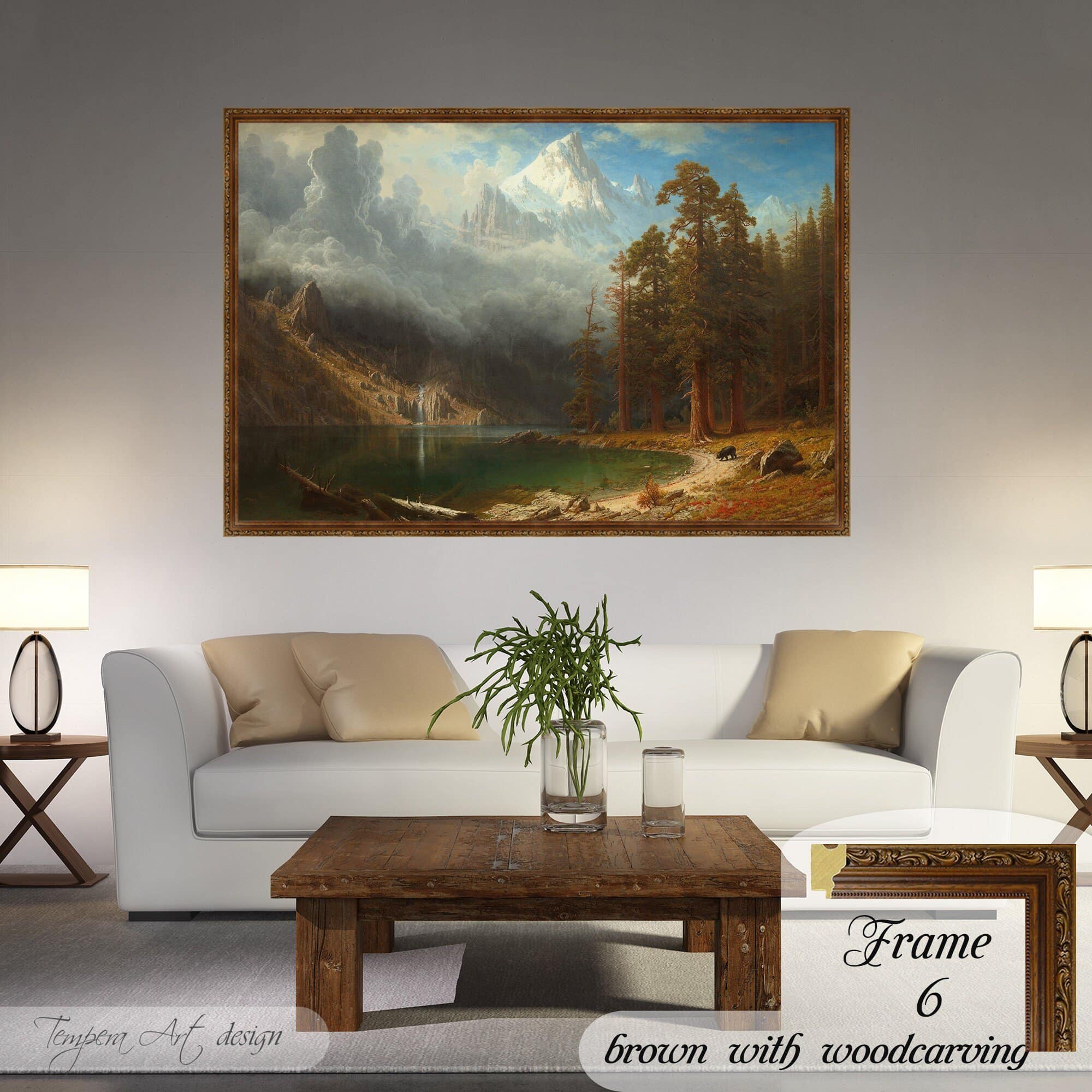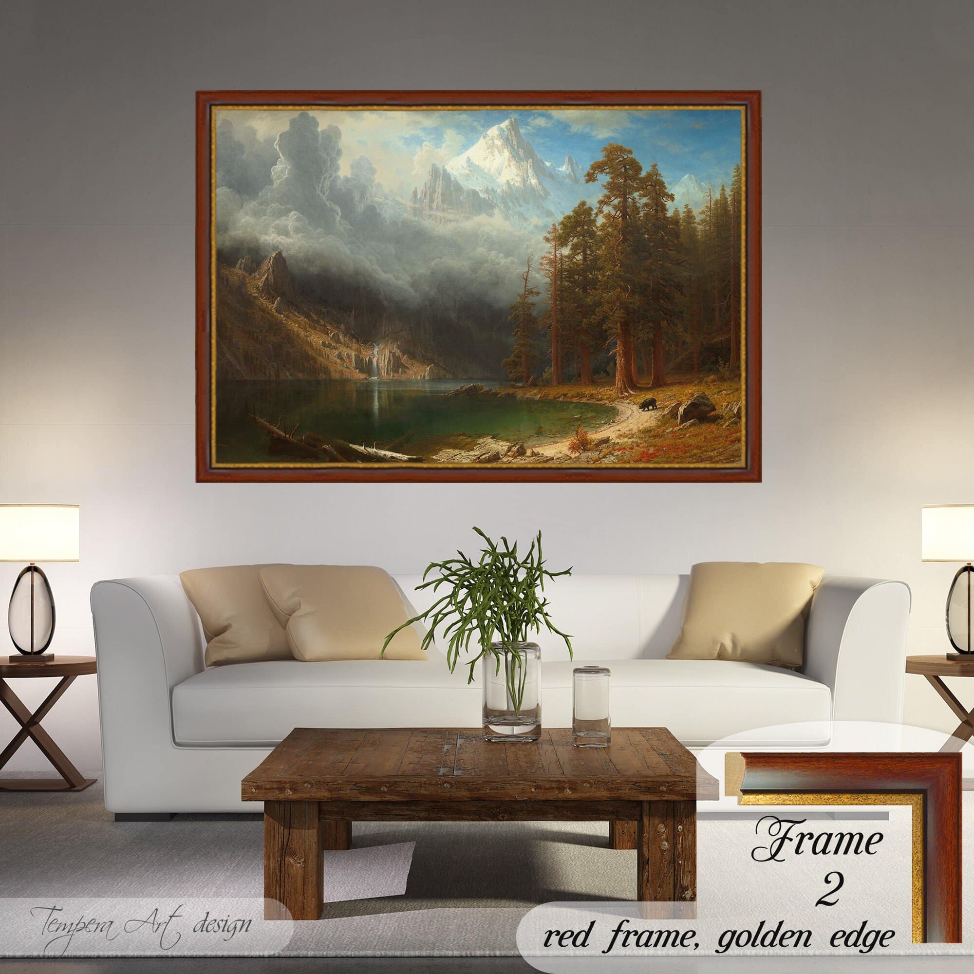 Albert Bierstadt “Mount Corcoran” print on canvas offered with different wooden frames or as an unframed wall art decor.