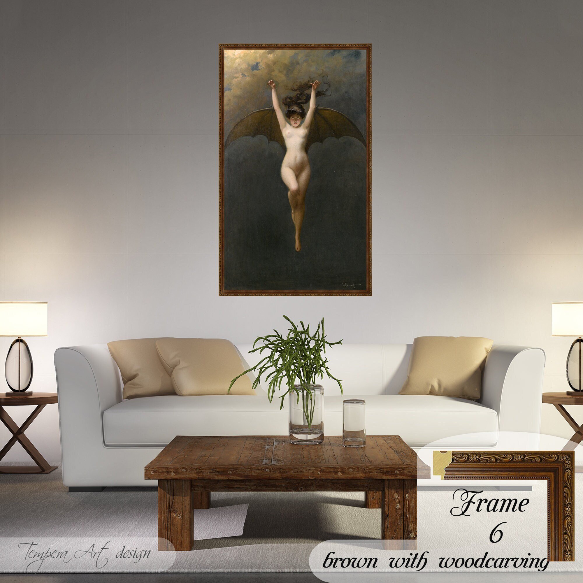 Albert Joseph Penot “Bat-Woman” print on canvas offered with different wooden frames or as an unframed wall art decor.