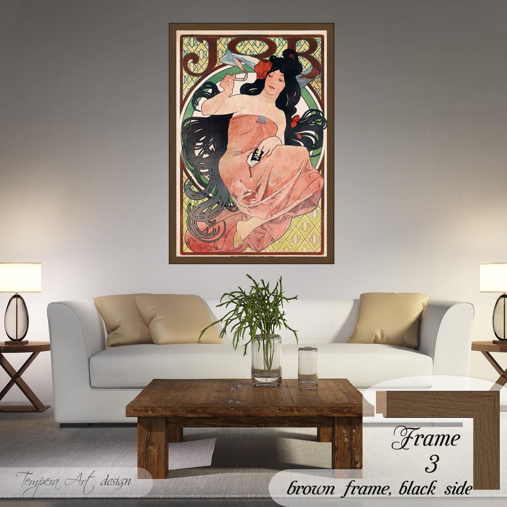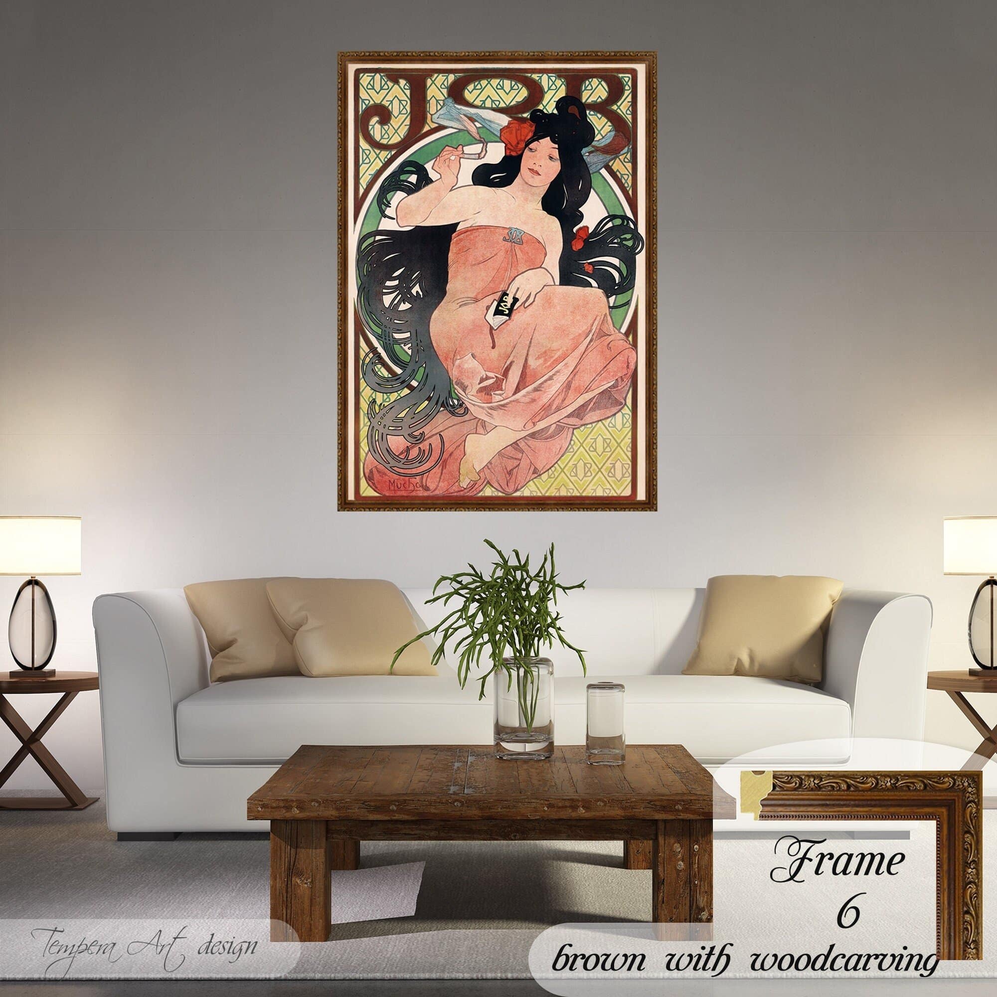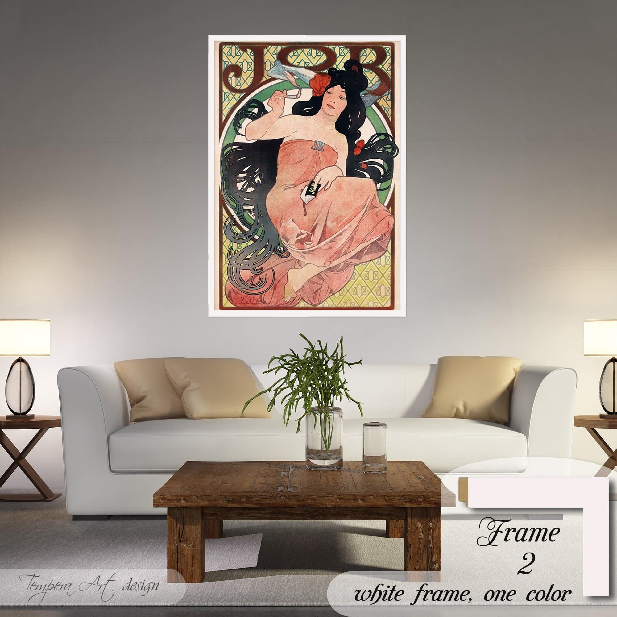 Alphonse Mucha Job Cigarettes 1898 canvas print offered with different wooden frames or as an unframed wall art decor.
