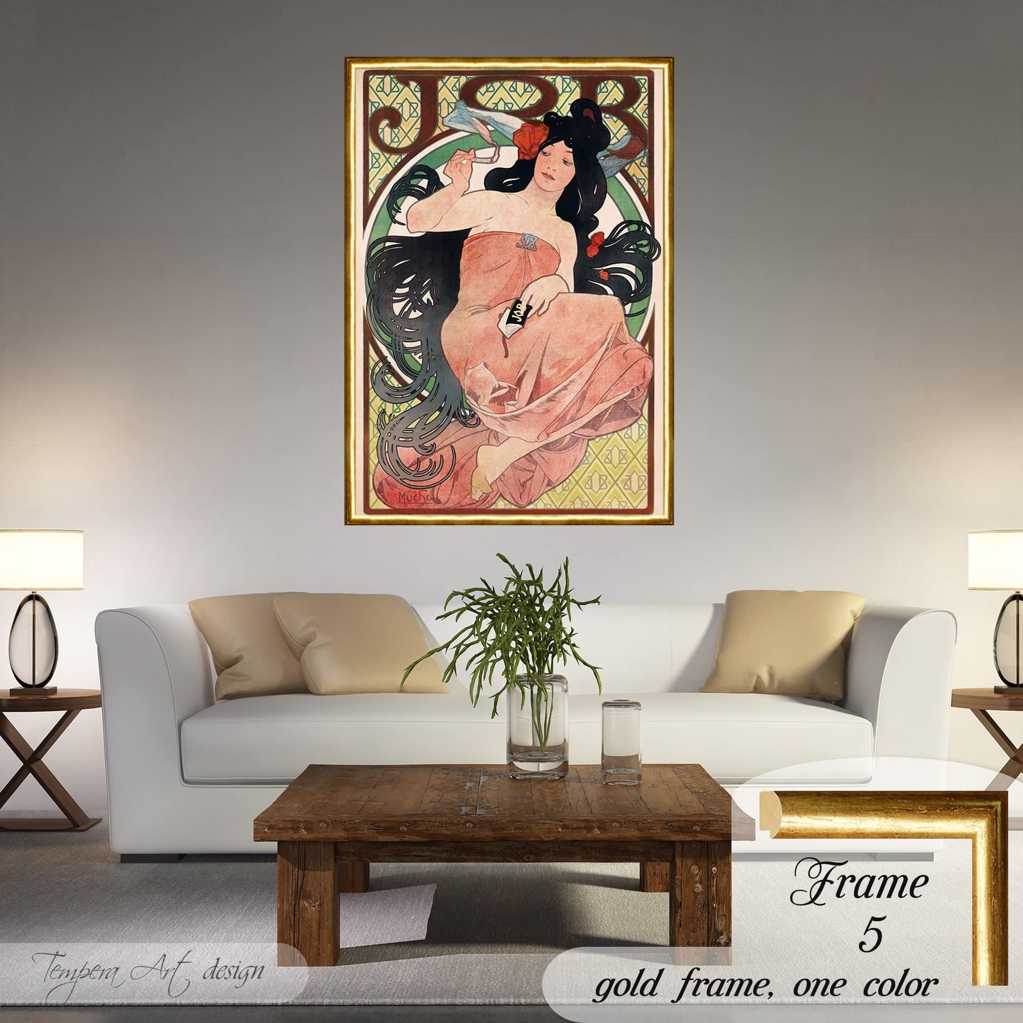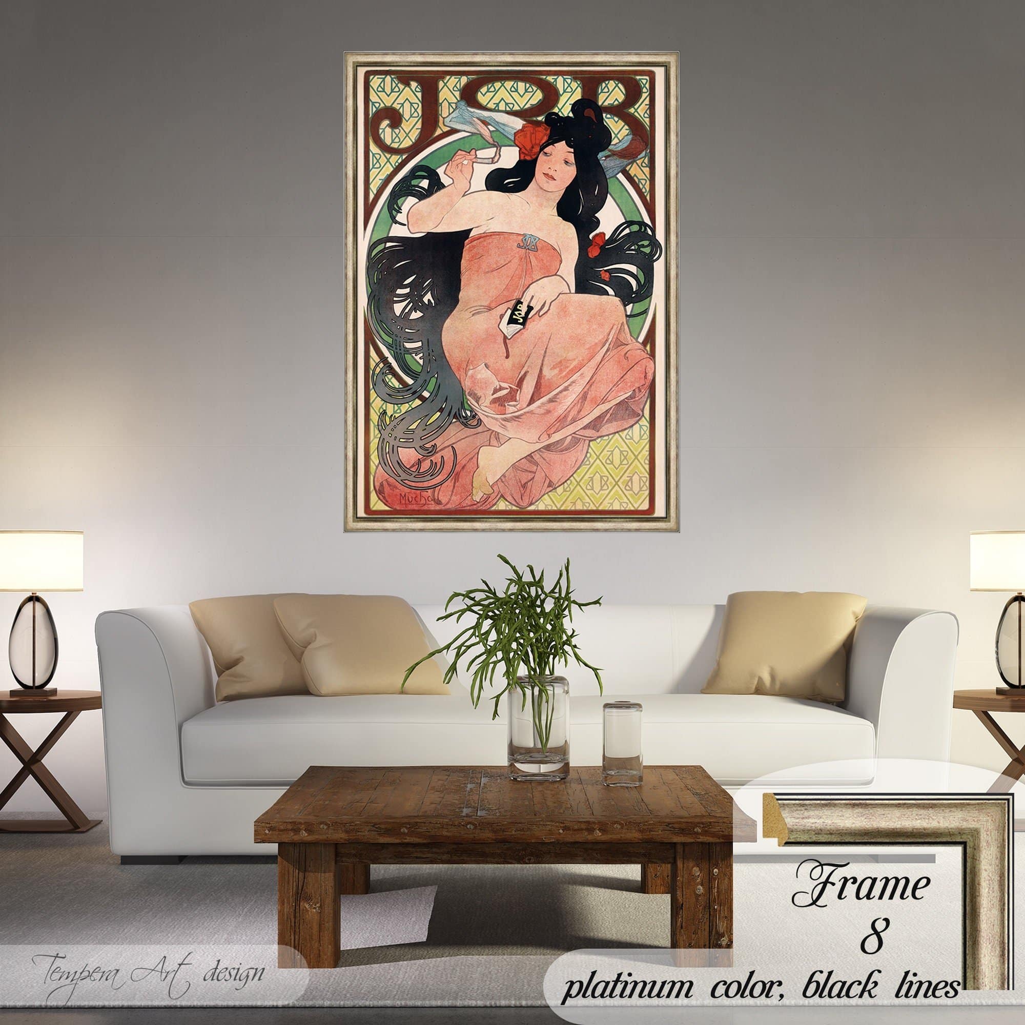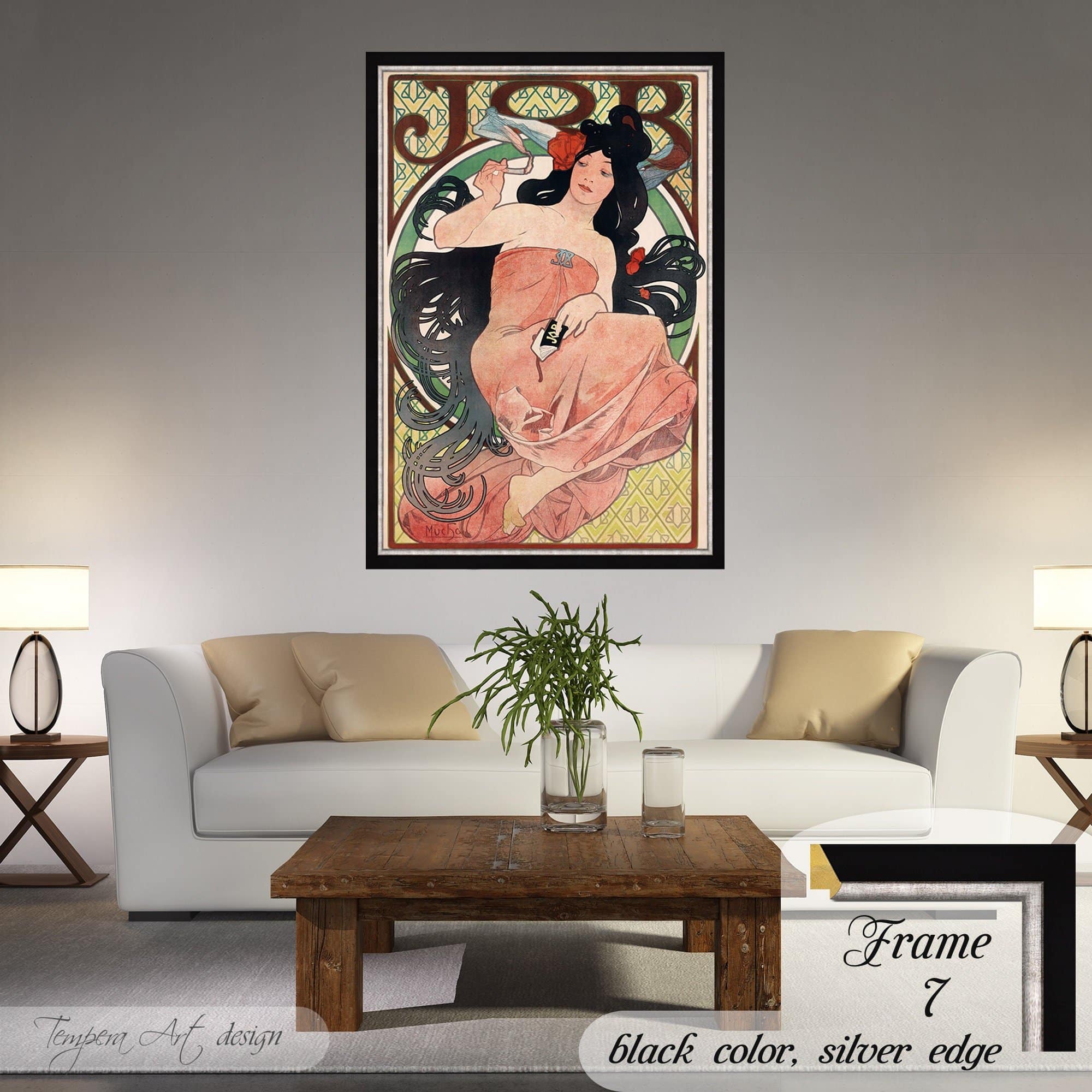 Alphonse Mucha Job Cigarettes 1898 canvas print offered with different wooden frames or as an unframed wall art decor.