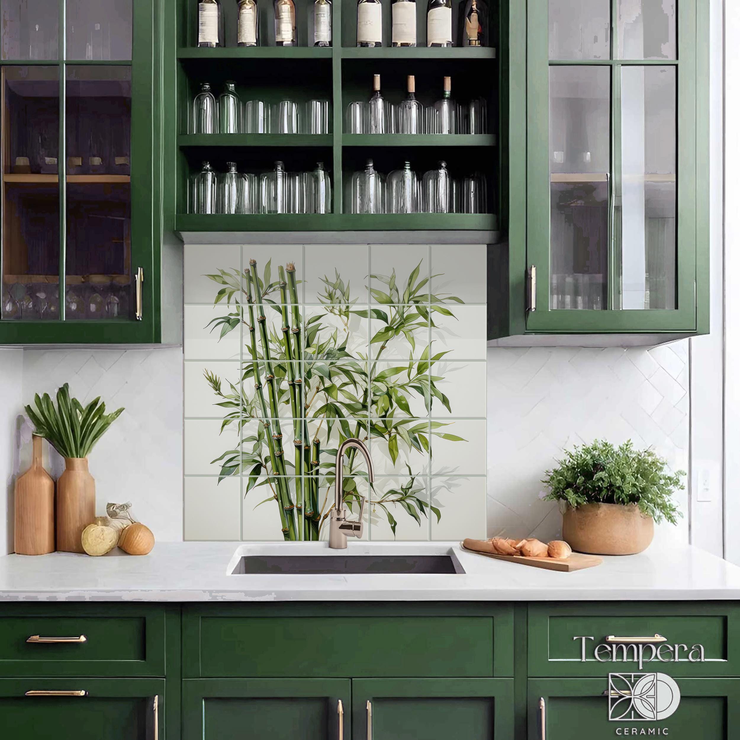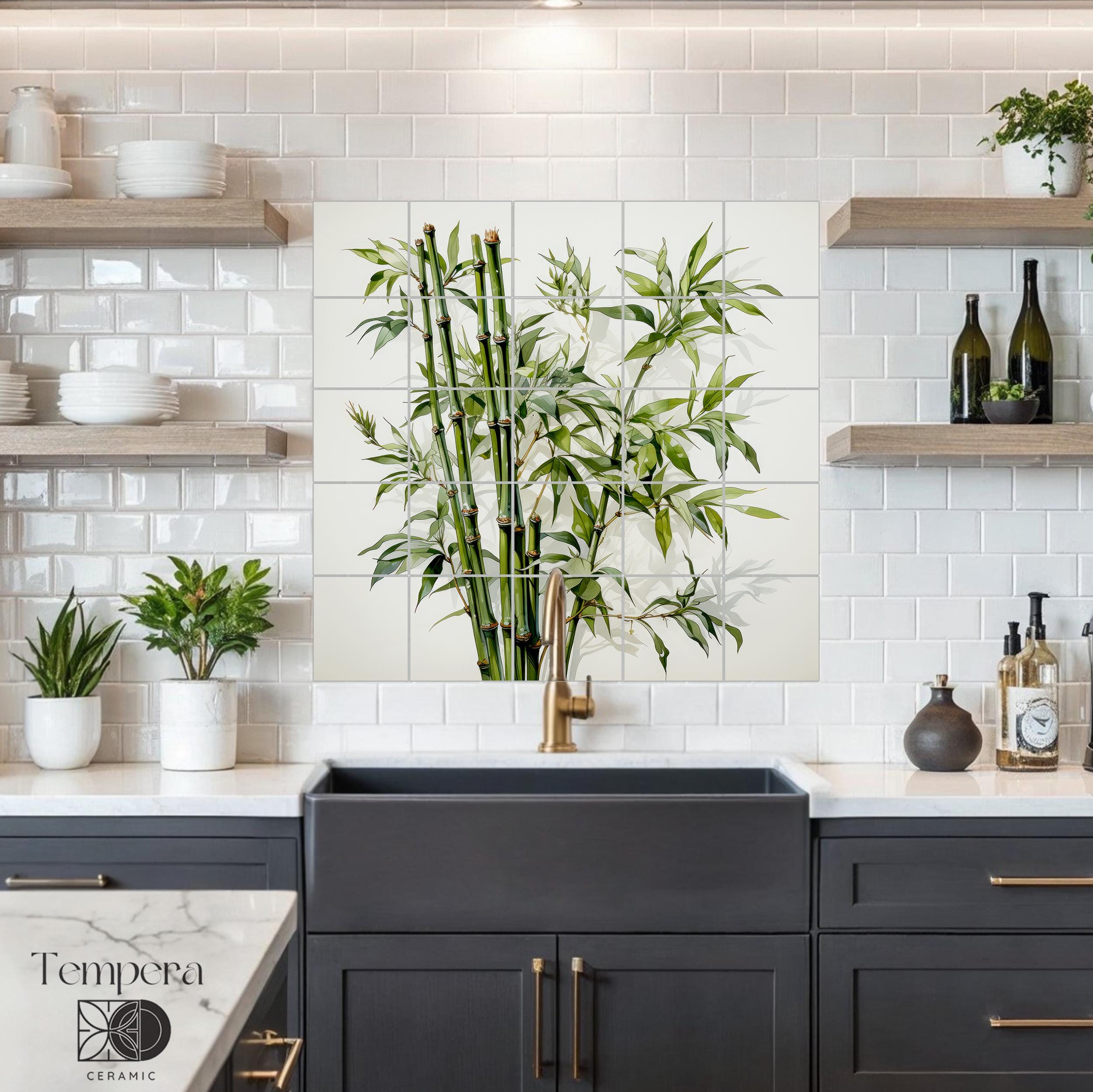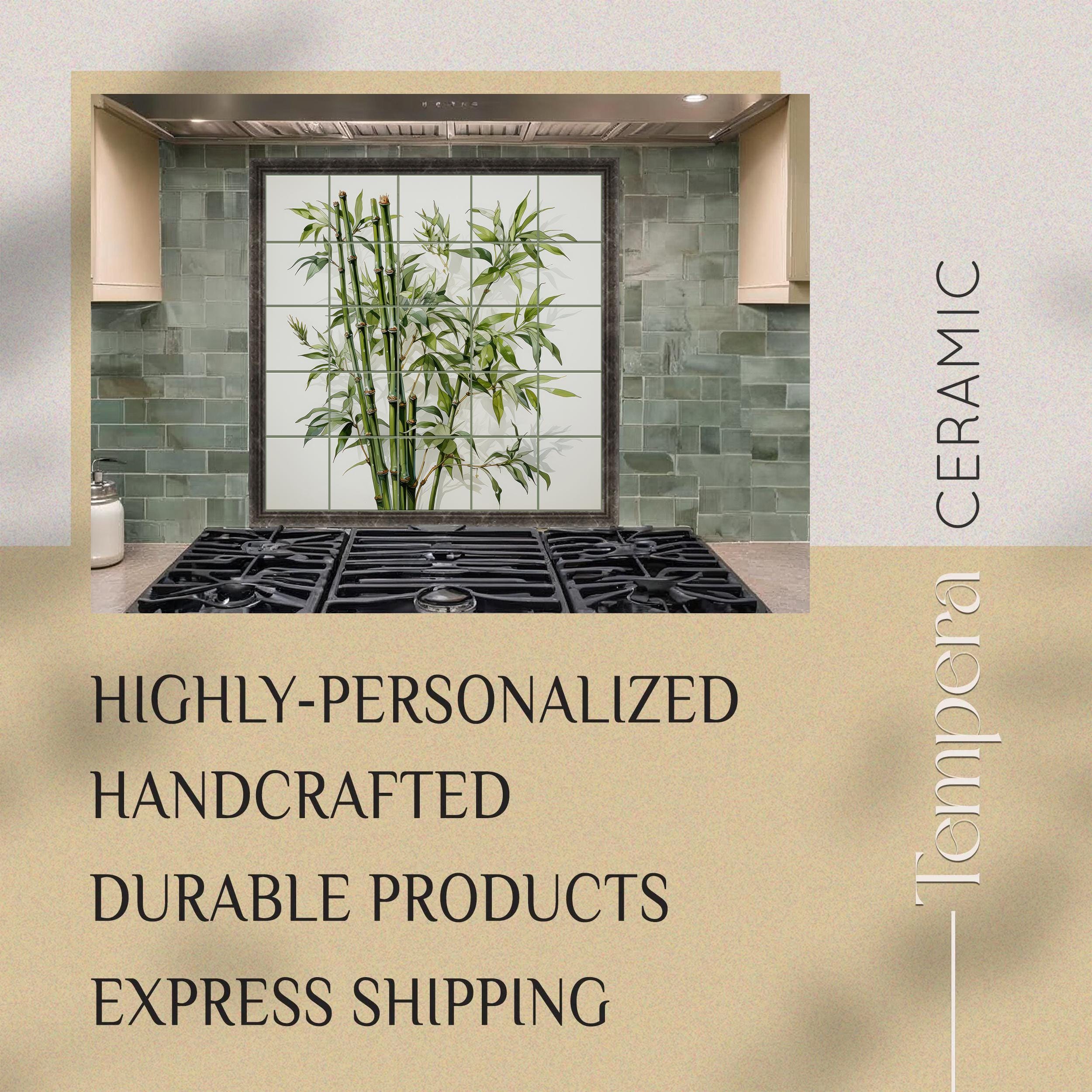 Bamboo kitchen tile mural, handcrafted and custom-made to fit your space. Our tiles are both unique and made to last. We can offer various customizations of the design and the sizes, or we can bring your vision to life with a completely different and unique look.