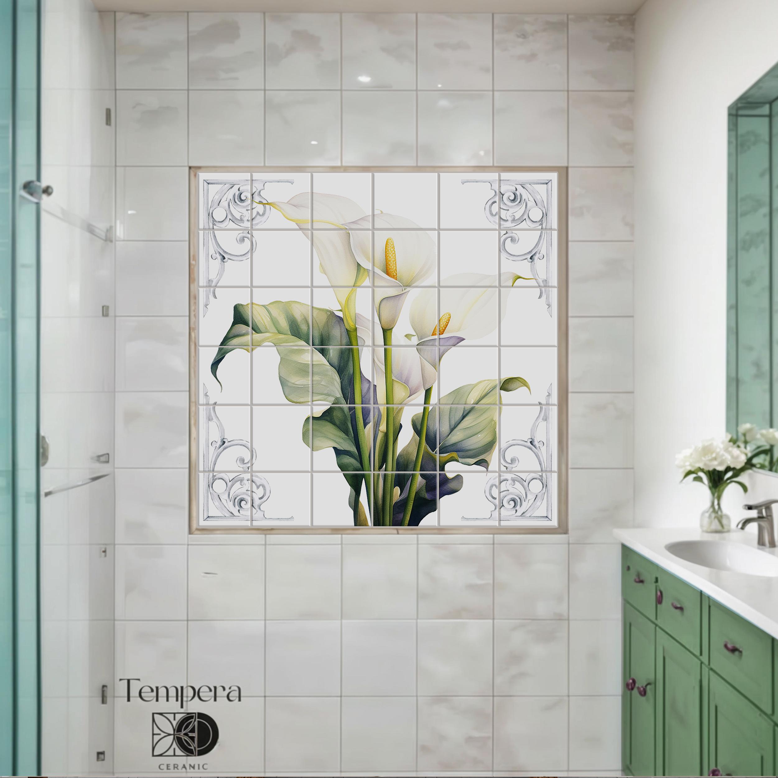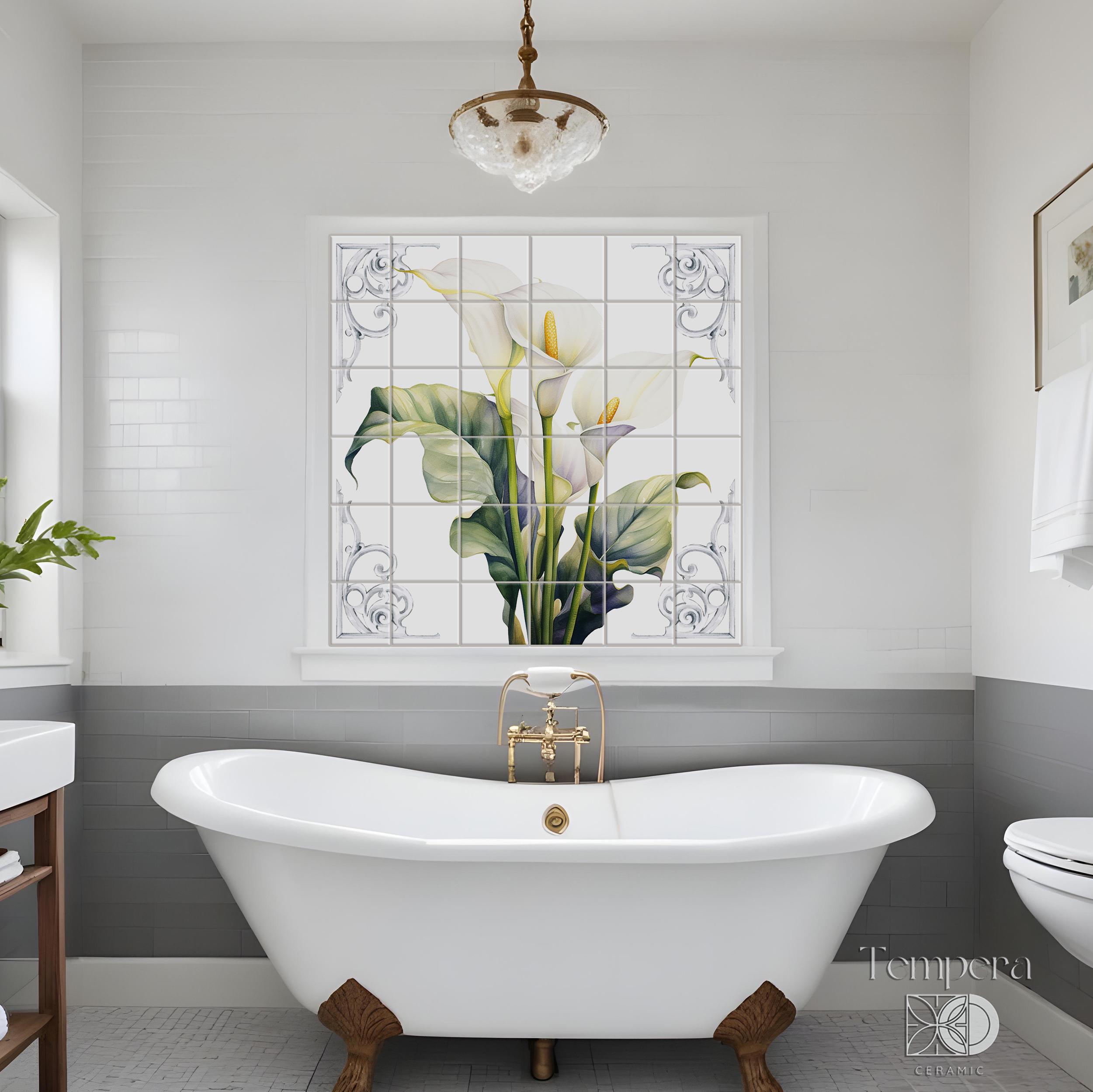 Calla Lily shower tiles mural, accent tiles with calla flowers, tiles backsplash with calla