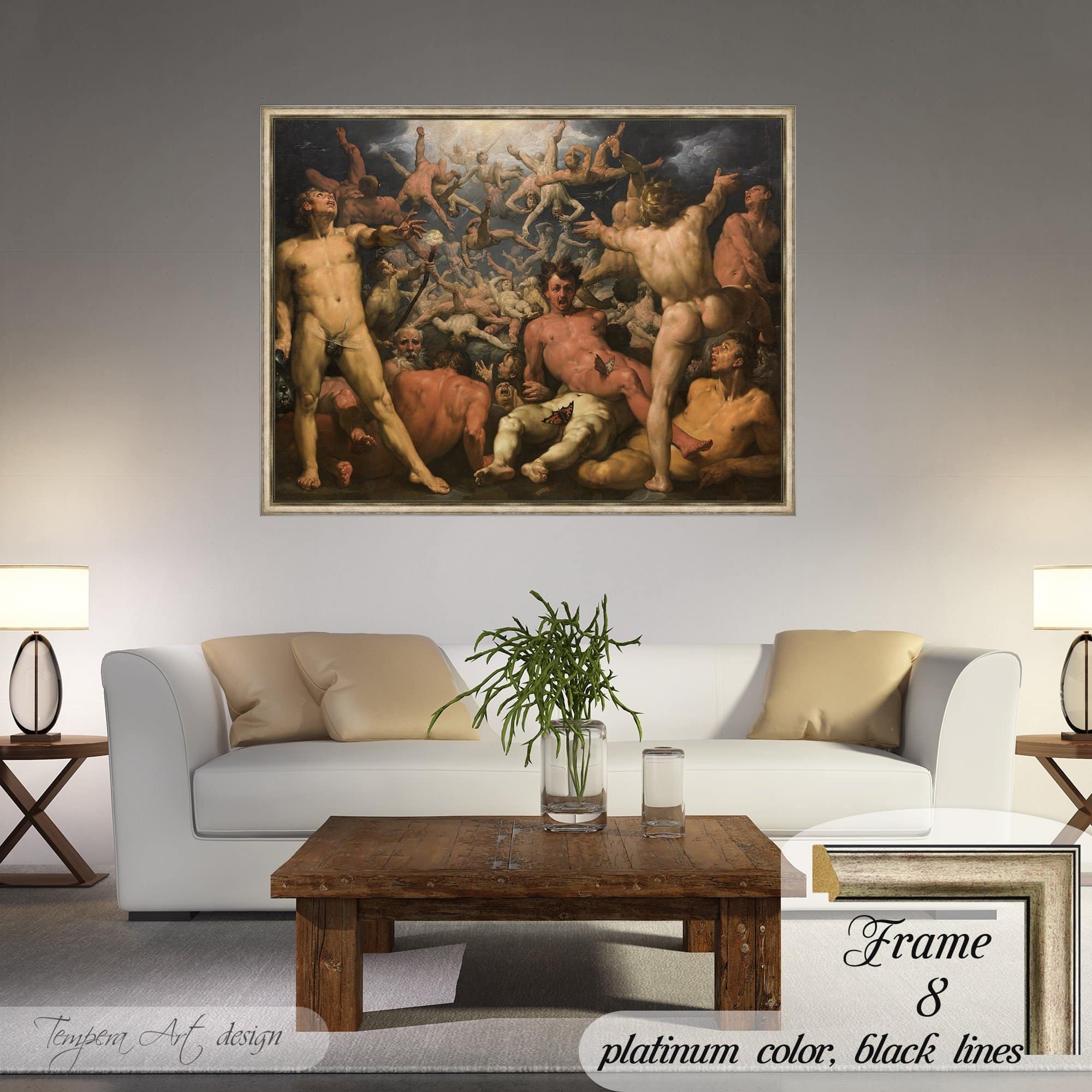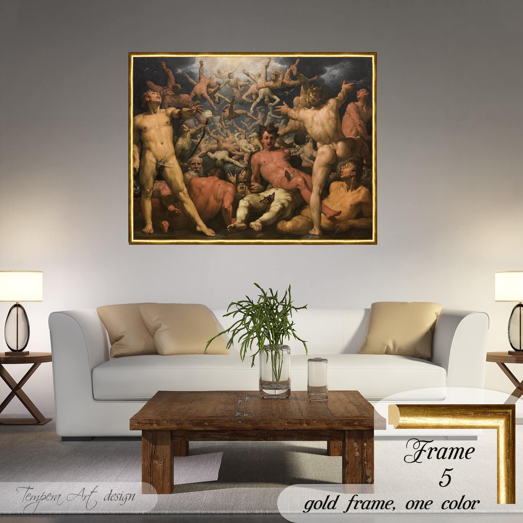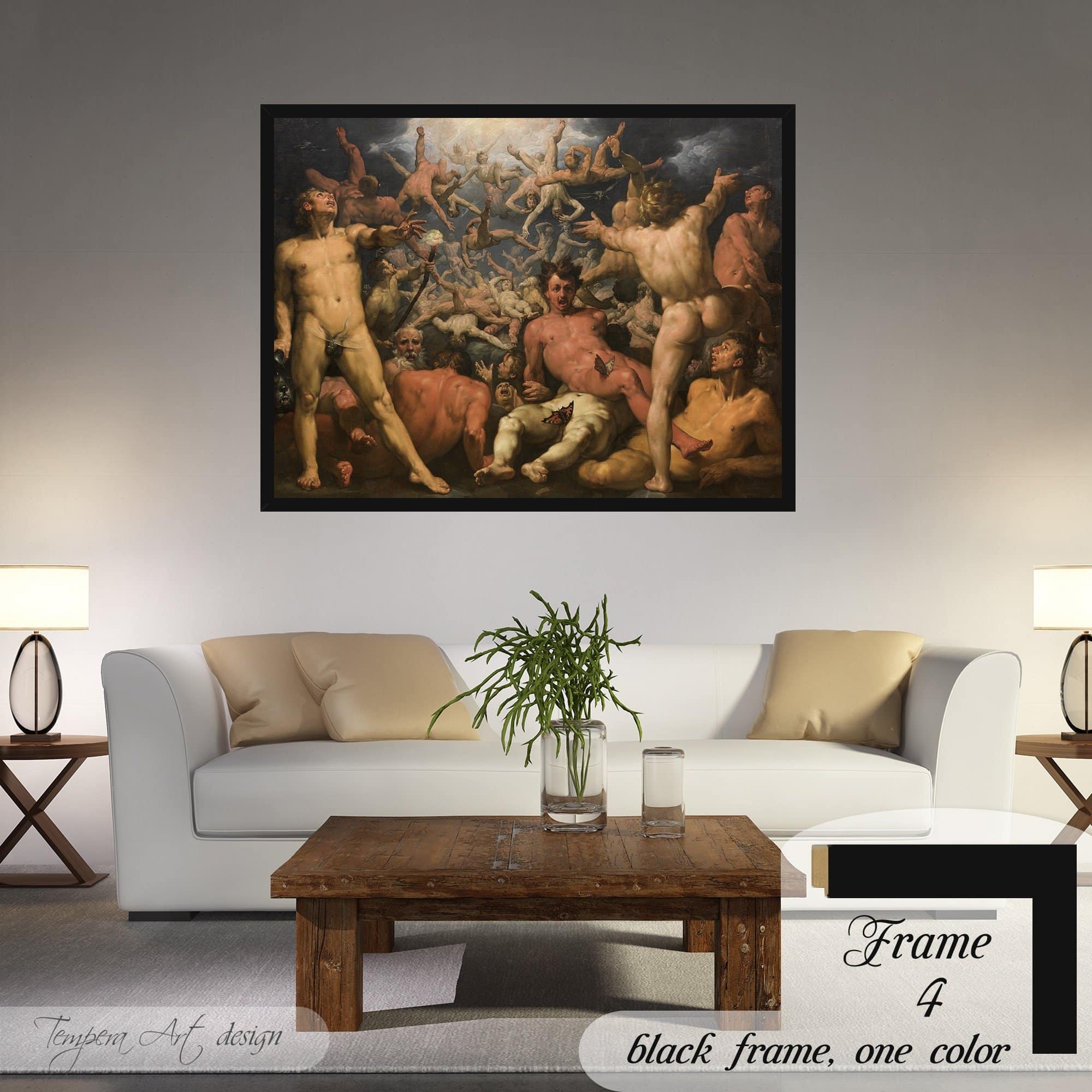 Cornelis van Haarlem “The Fall of the Titans” print on canvas offered with different wooden frames or as an unframed wall art decor.