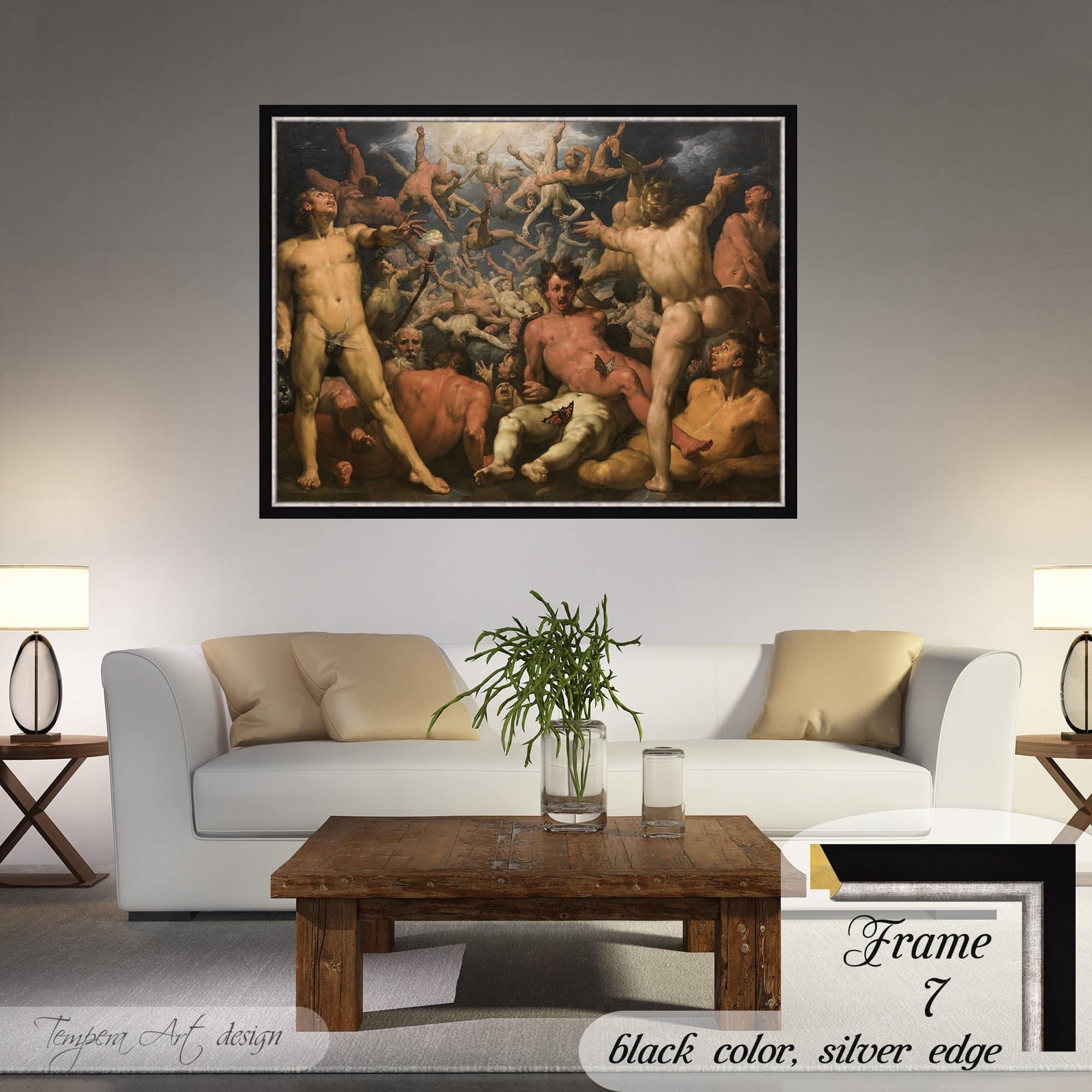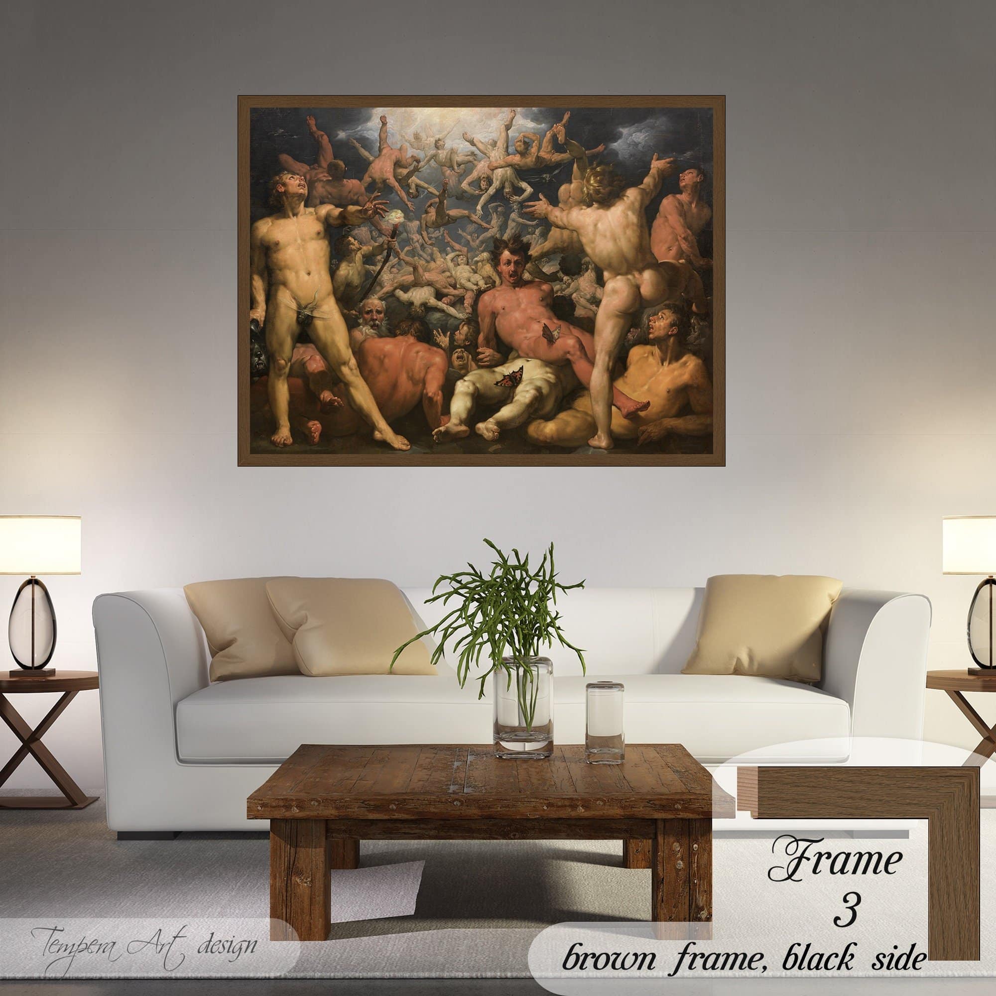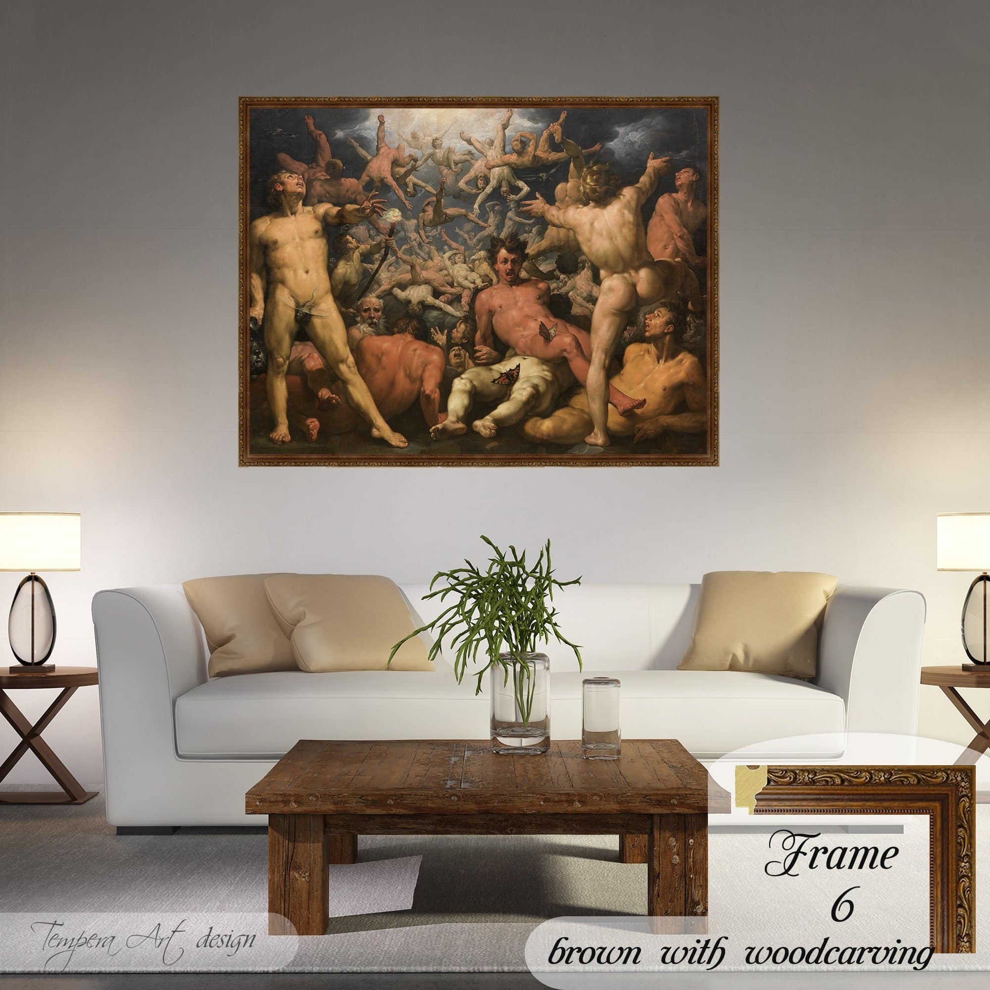 Cornelis van Haarlem “The Fall of the Titans” print on canvas offered with different wooden frames or as an unframed wall art decor.
