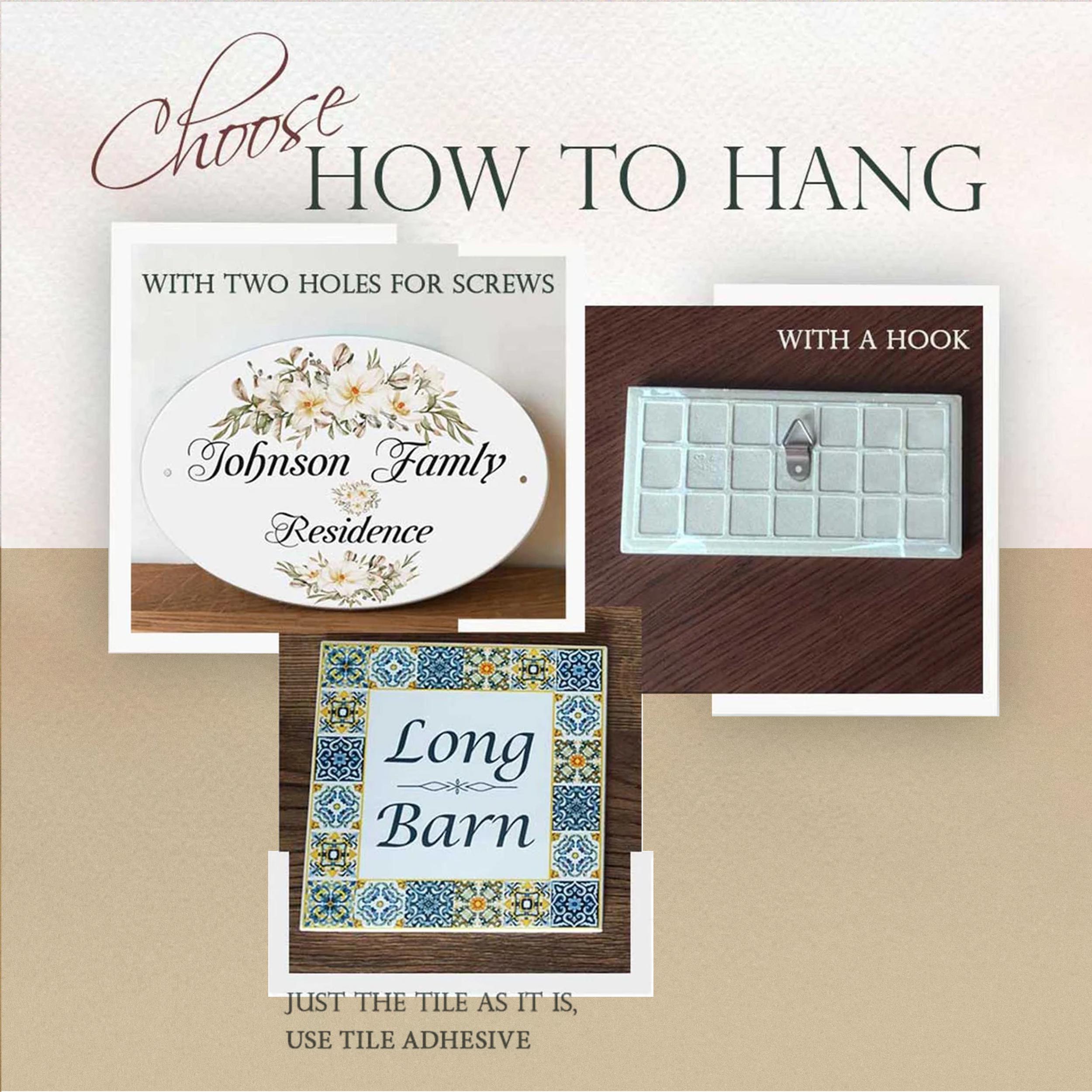 Custom House name or house number plaque. With this handcrafted porcelain tile you can add a stylish elemnt to your fornt door. Each tile is printed with high-quality image that goes deep into the coating layer of the tile, ensuring the durability of the product.