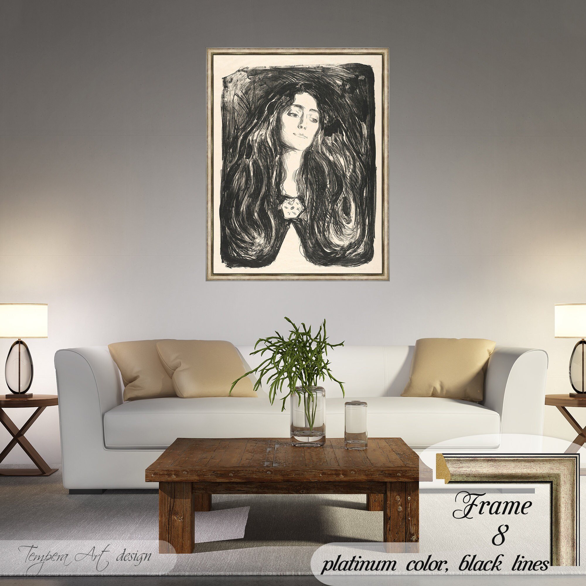Edvard Munch’s The Brooch. Eva Mudocci art print on canvas offered with different wooden frames or as an unframed wall art decor.