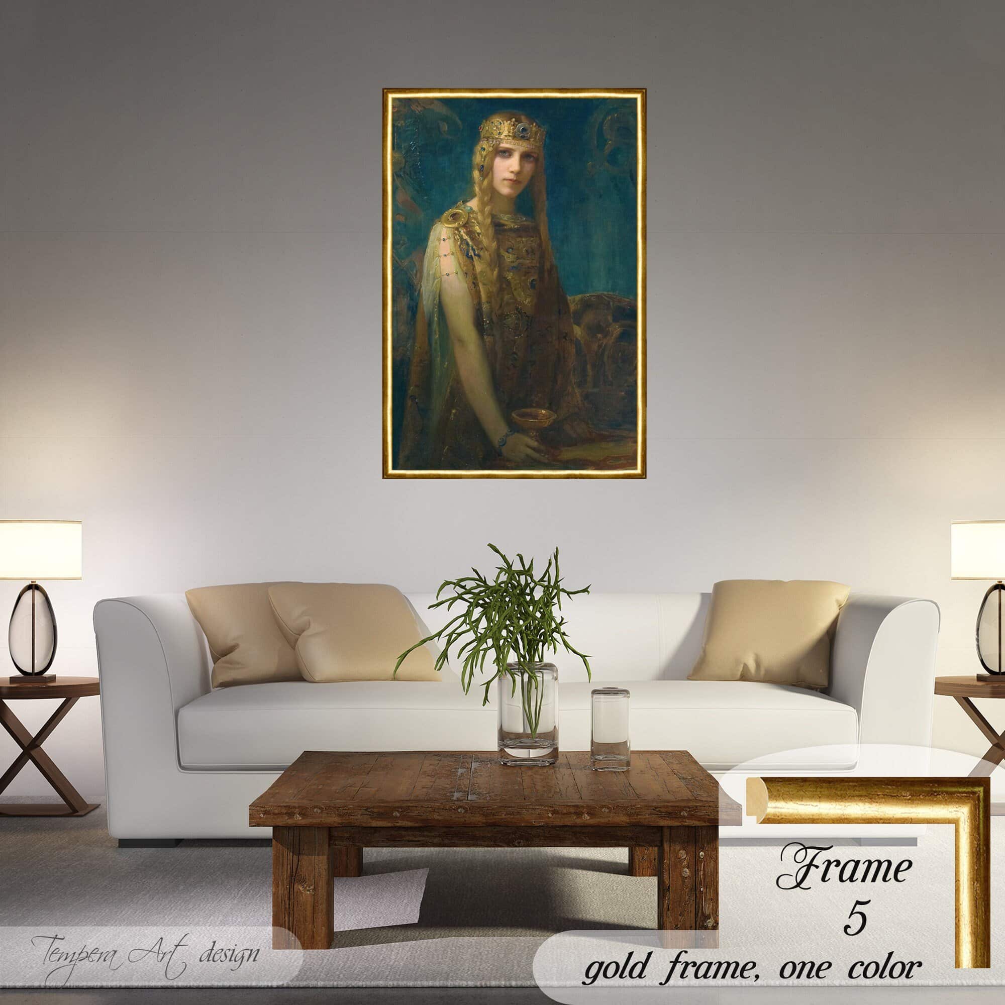 Gaston Bussiere “Isolde”print on canvas offered with different wooden frames or as an unframed wall art decor.