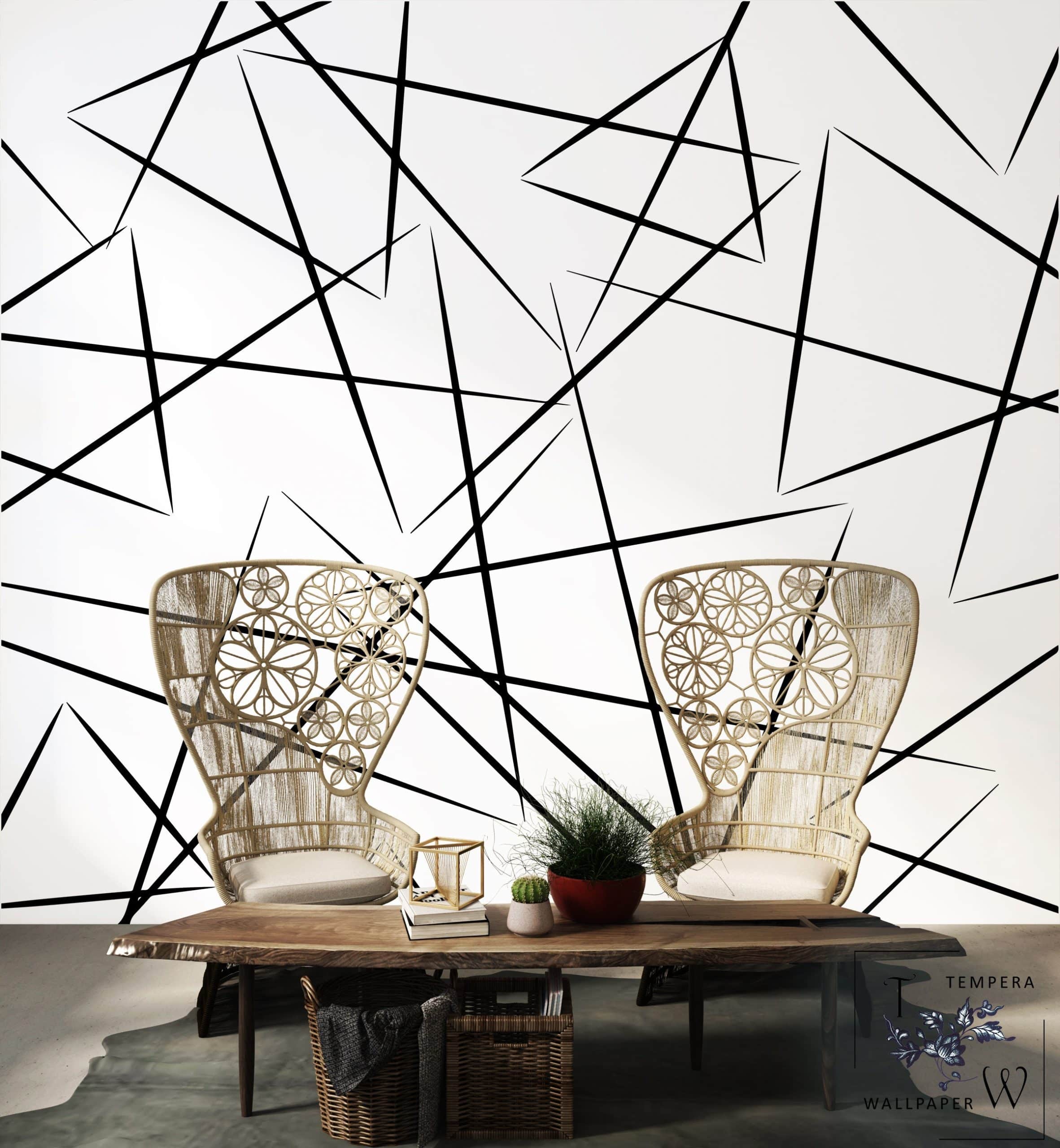 Geometric Wallpaper, Black and white Wallpaper, Geometric Figures Wallpaper, Black lines Wallpaper
