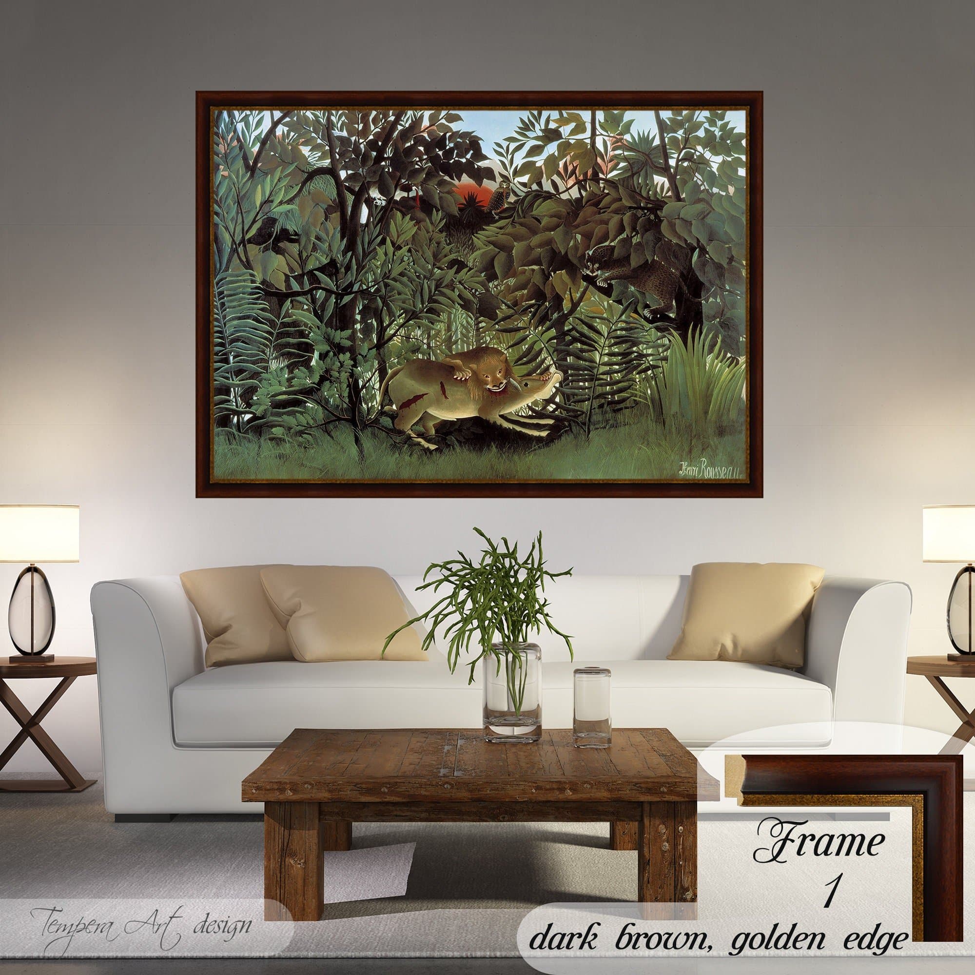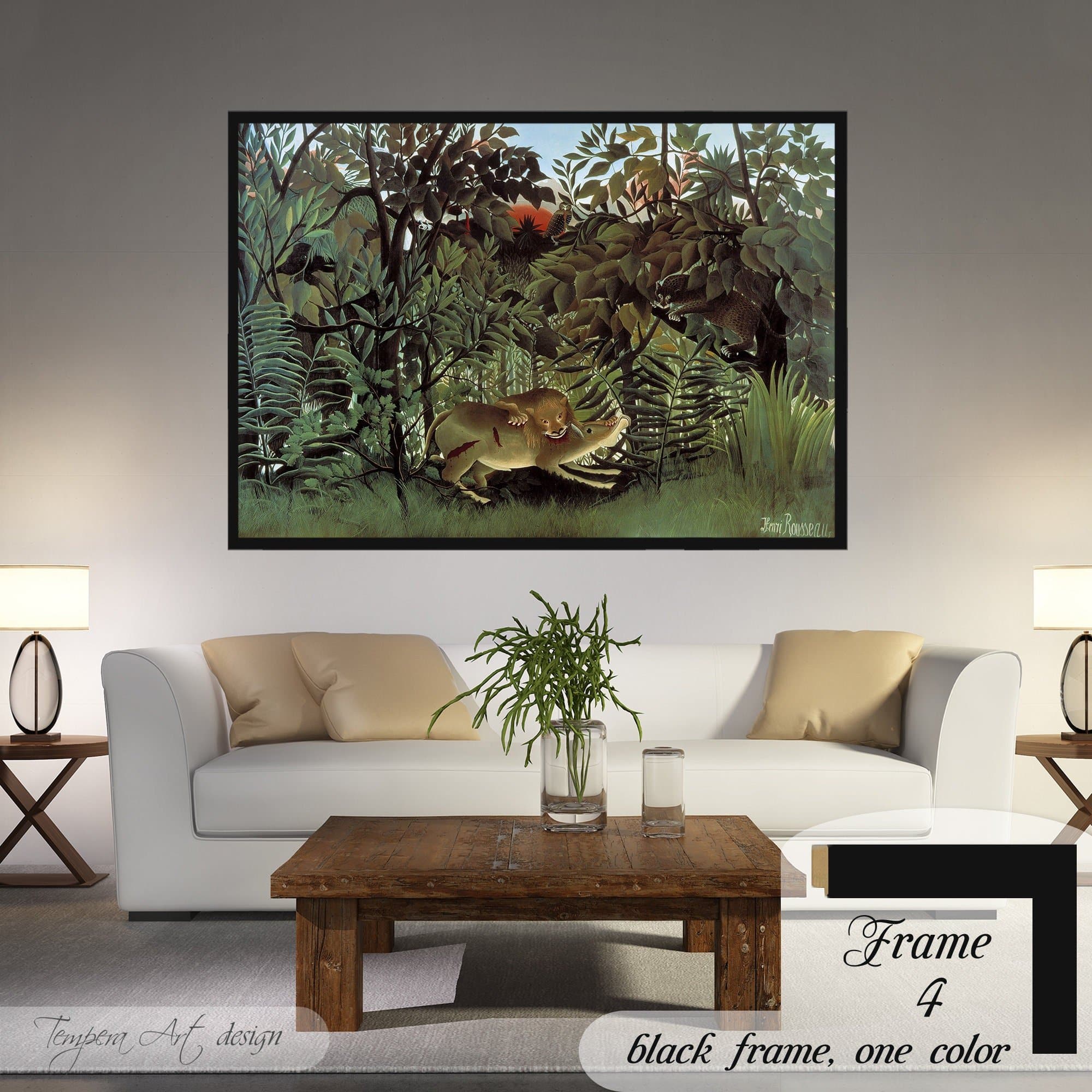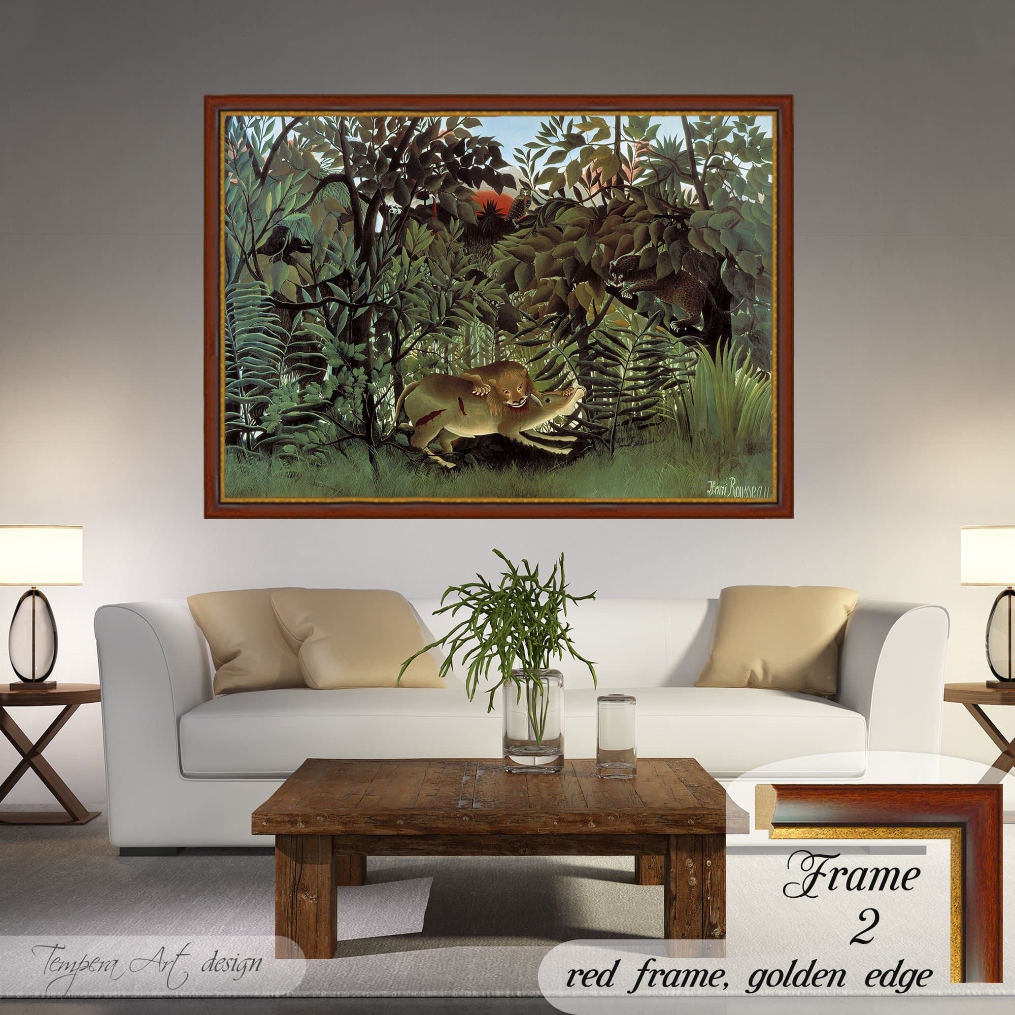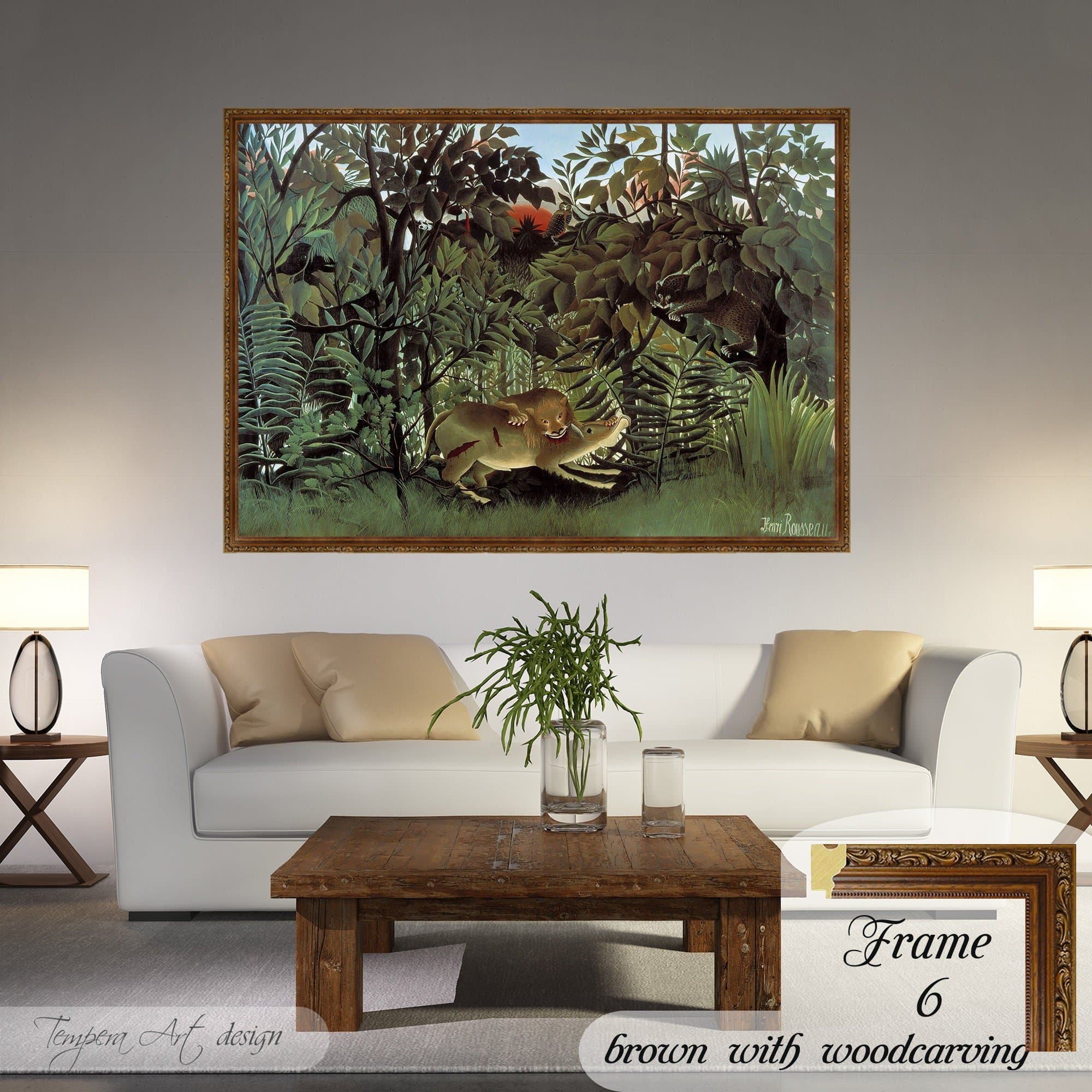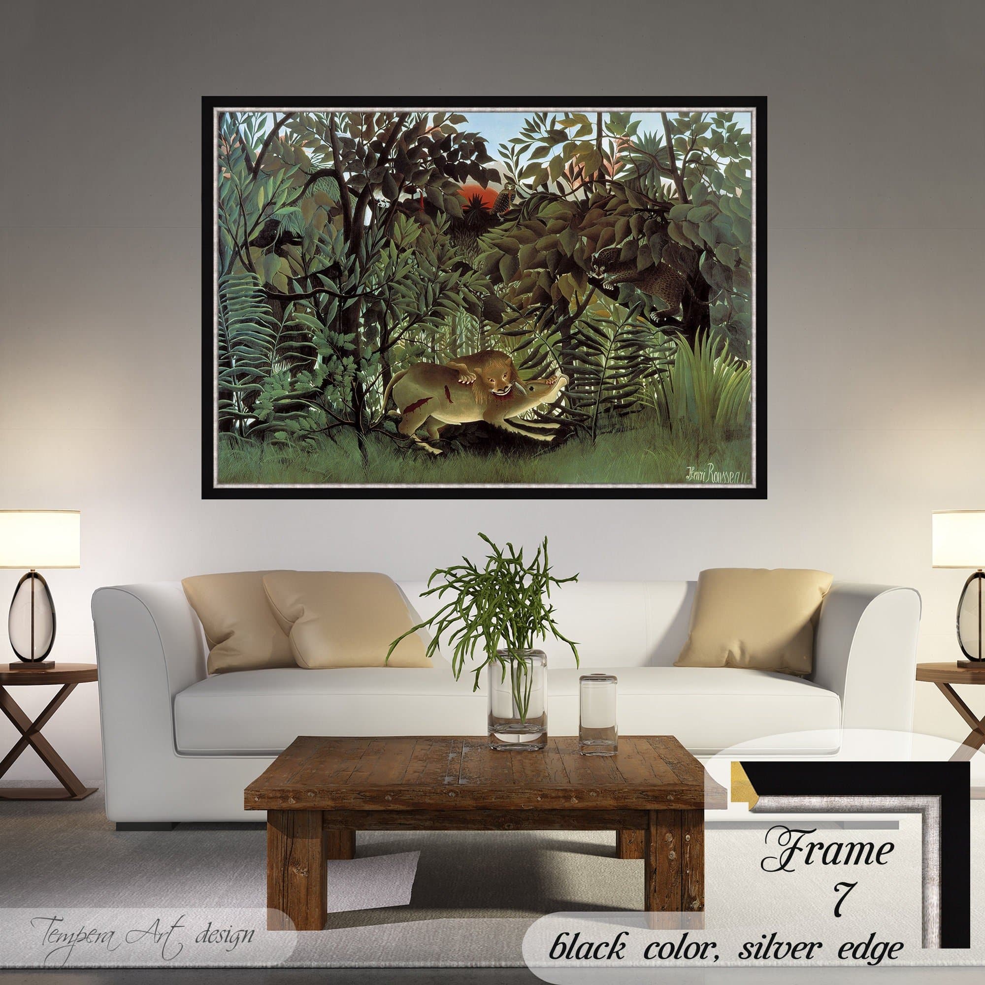 Hungry Lion Throws Itself on Antelope by Henri Rousseau canvas is printed using HIGH QUALITY INKS.