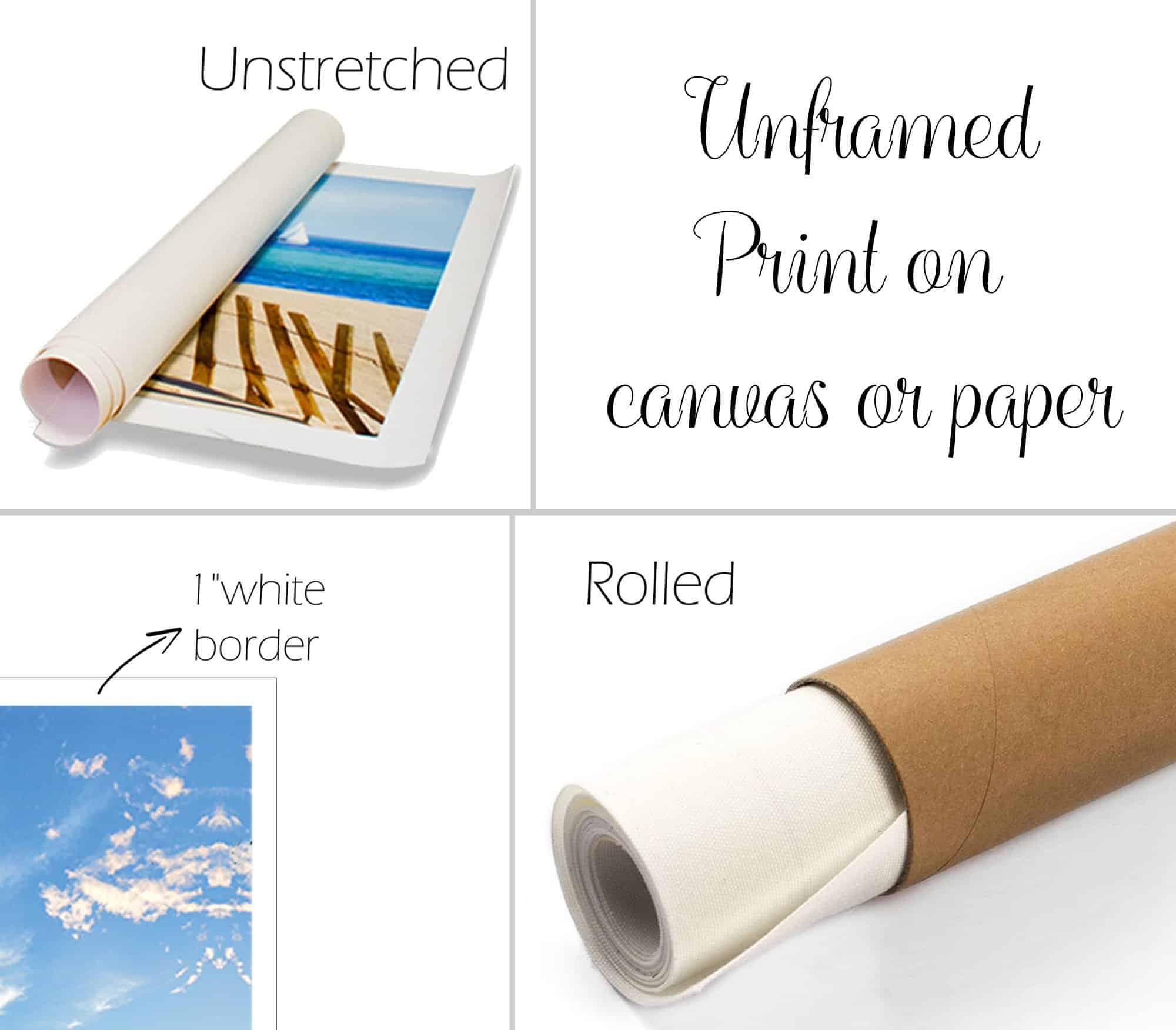 You can choose between A GALLERY WRAPPED CANVAS PRINT or UNFRAMED PRINT