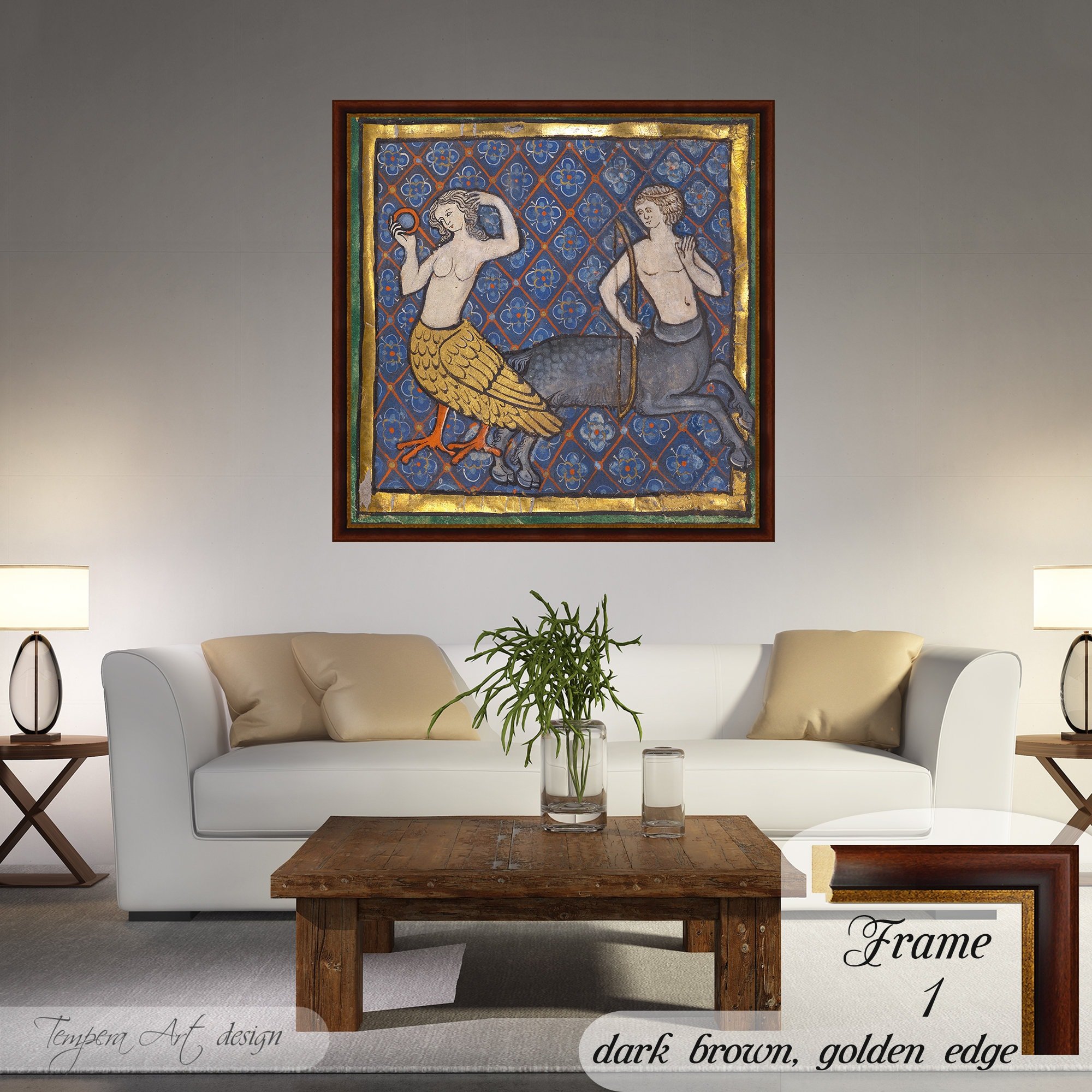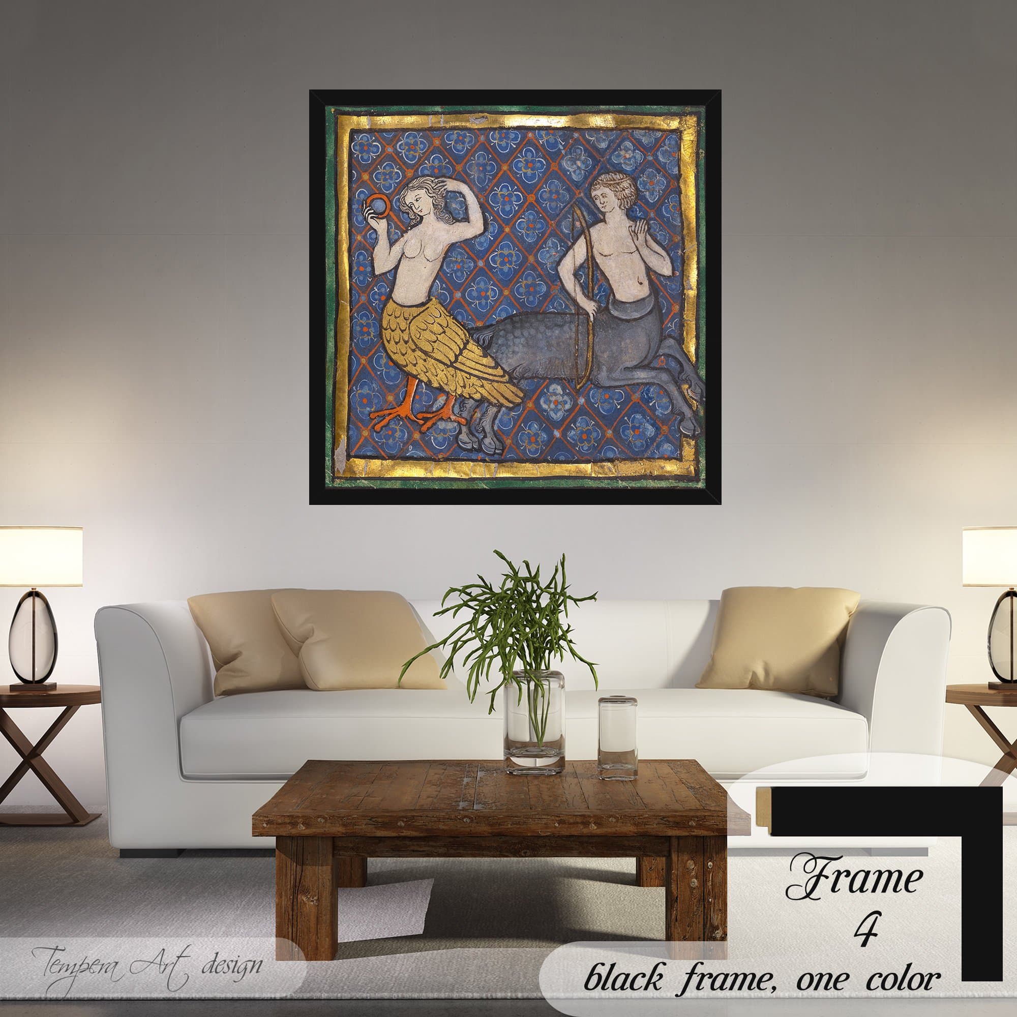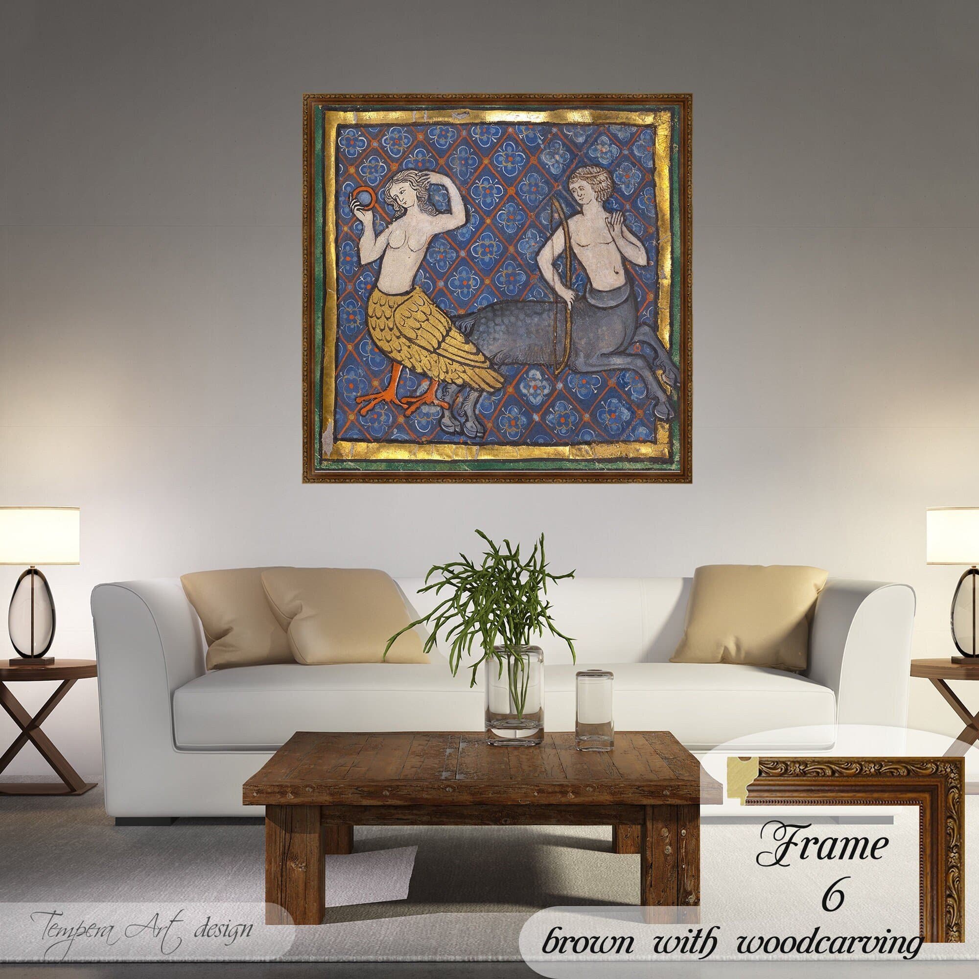 Medieval Bestiary: A Siren and a Centaur illuminated manuscript mythological illustration canvas is printed using HIGH QUALITY INKS.