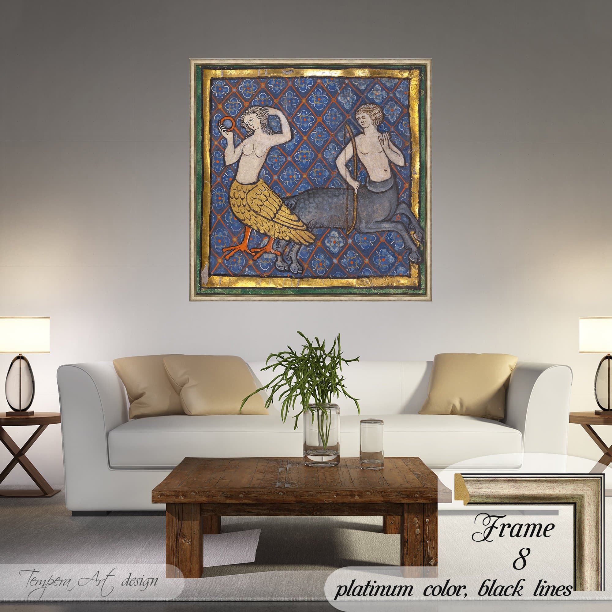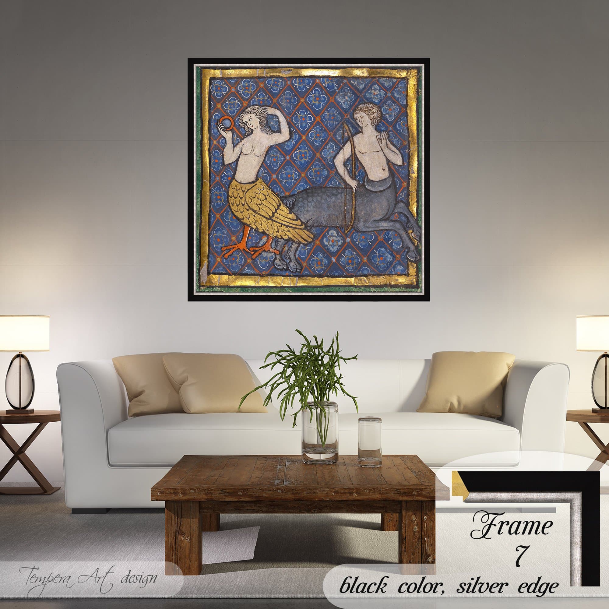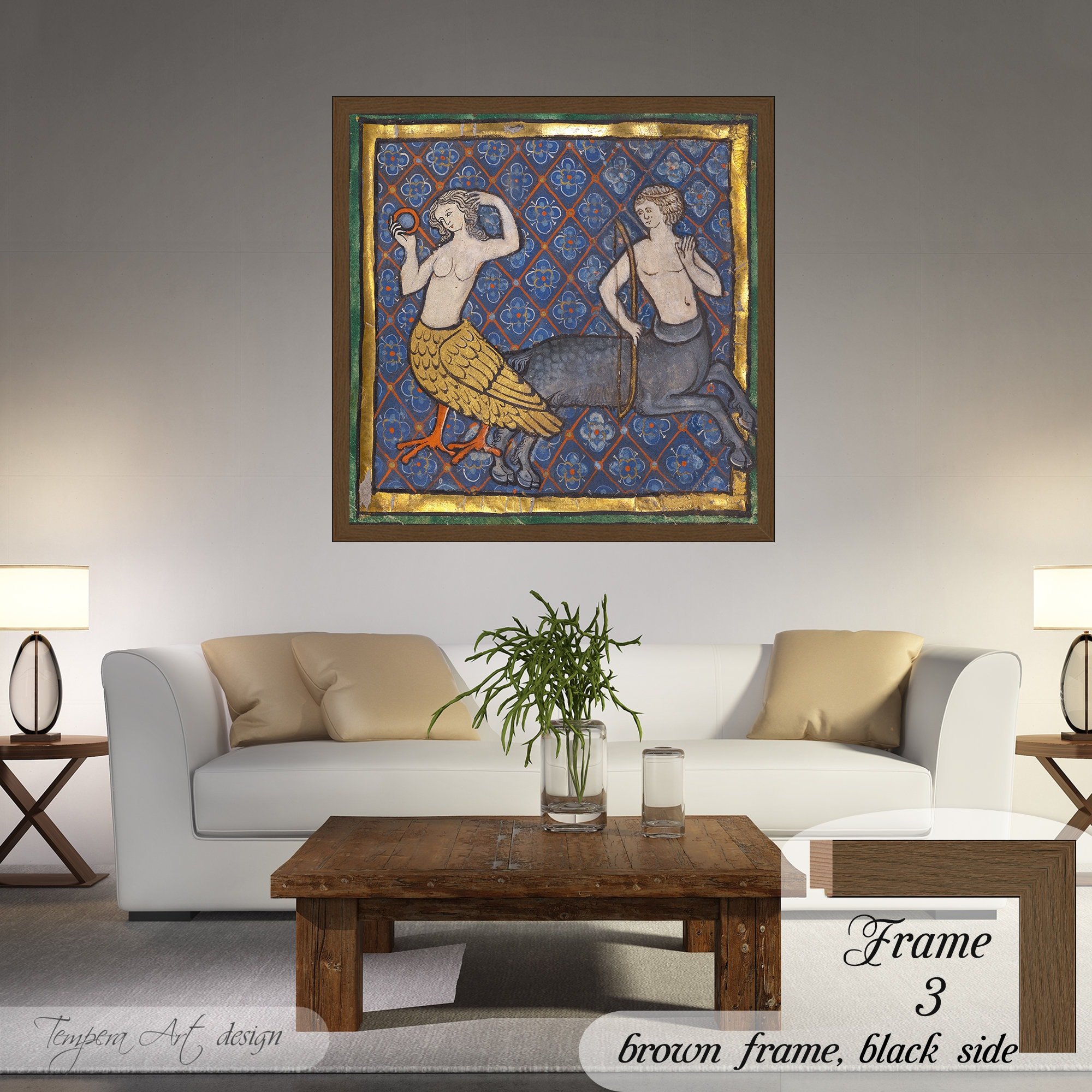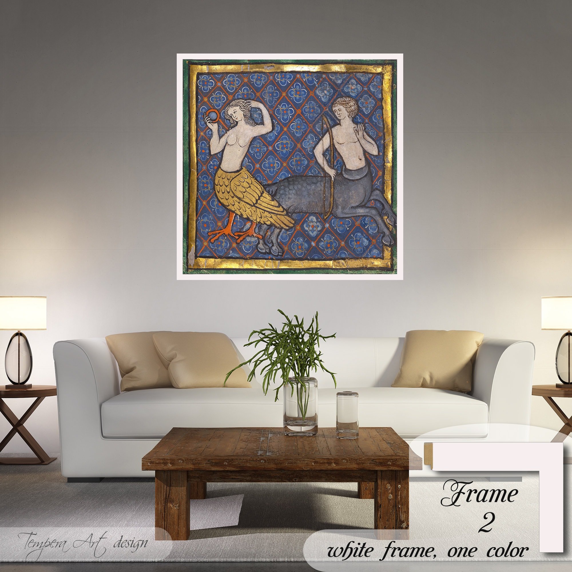 Medieval Bestiary: A Siren and a Centaur illuminated manuscript mythological illustration canvas is printed using HIGH QUALITY INKS.