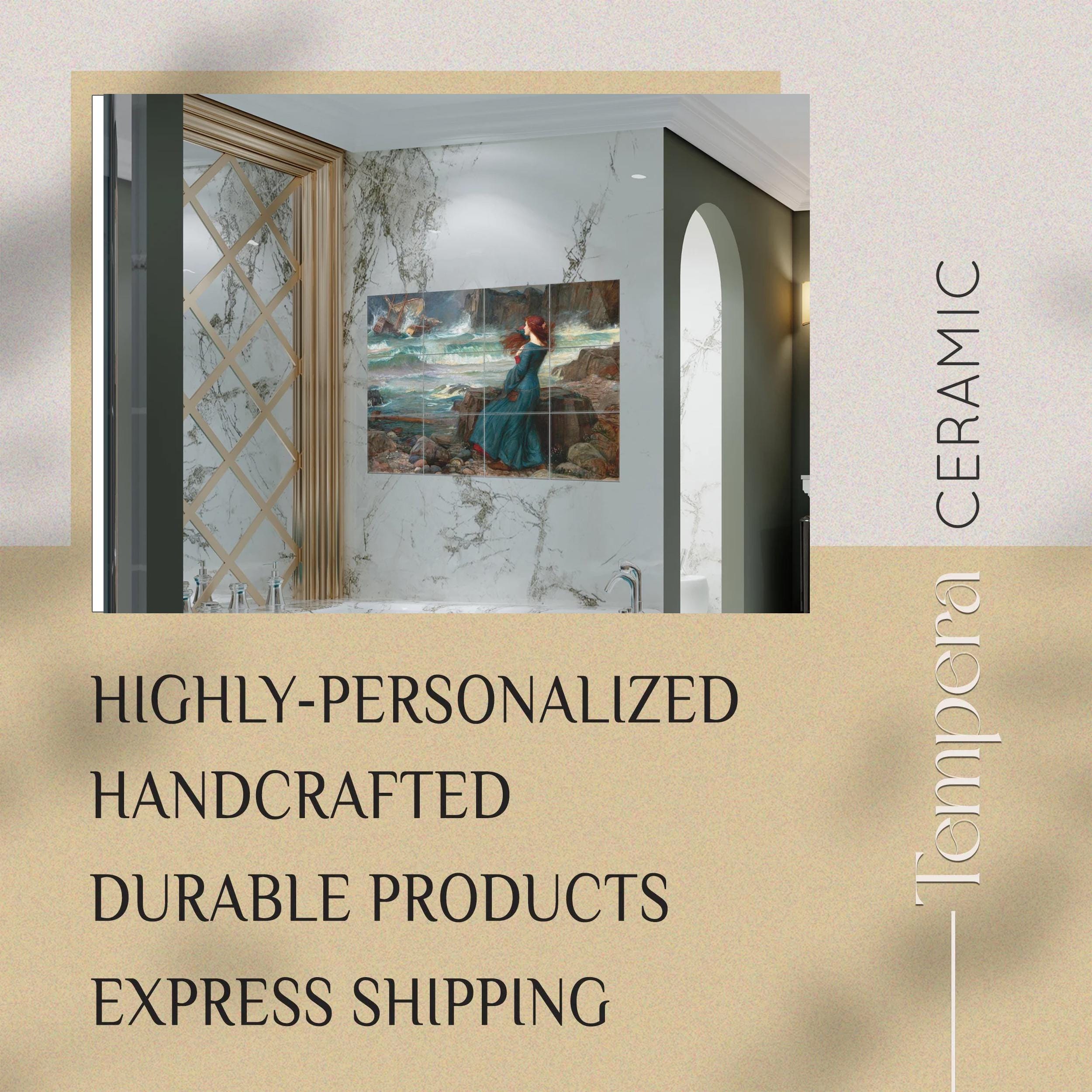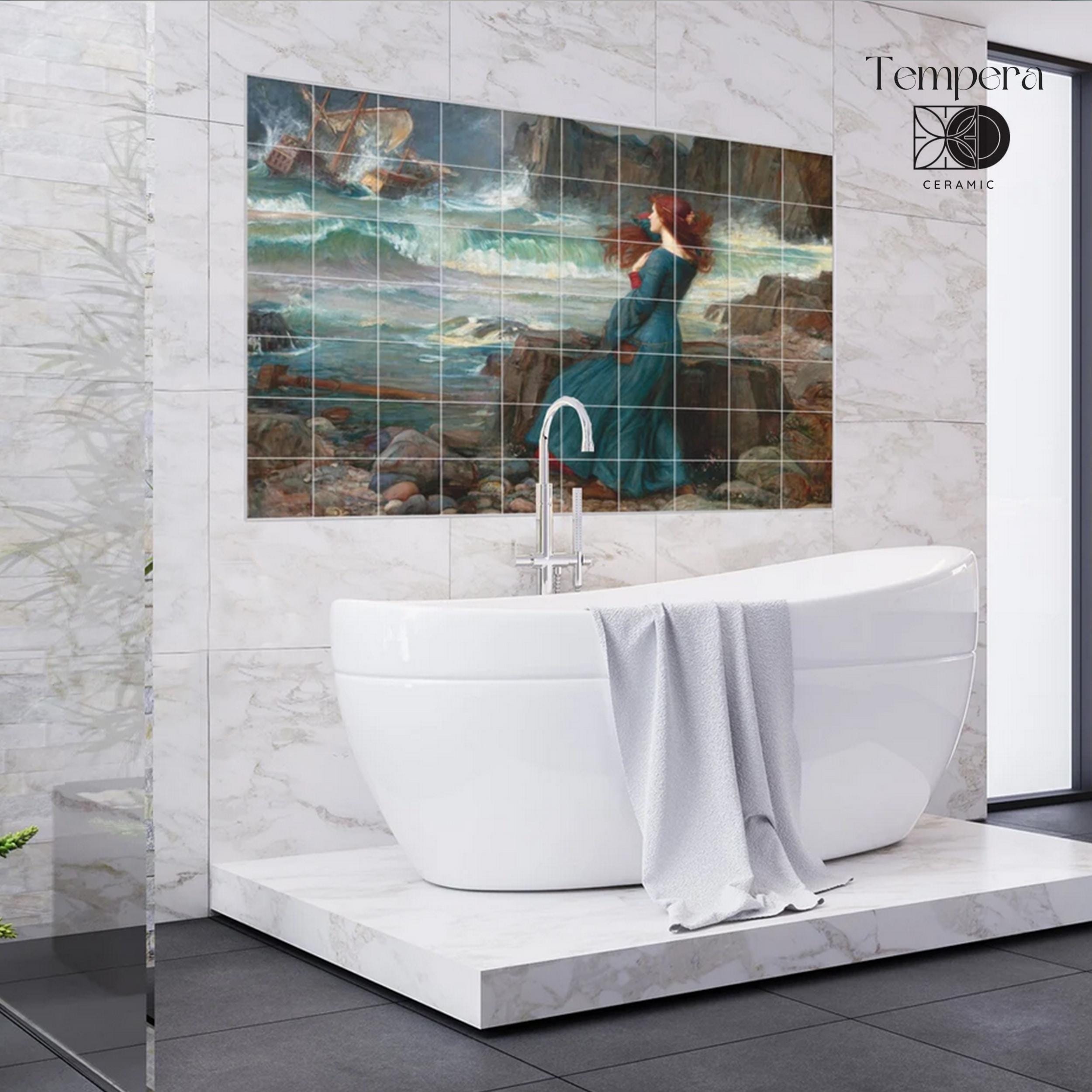 Miranda by Waterhouse tiles mural, handcrafted and custom-made to fit your space. Our tiles are both unique and made to last. We can offer various customizations of the design and the sizes, or we can bring your vision to life with a completely different and unique look.