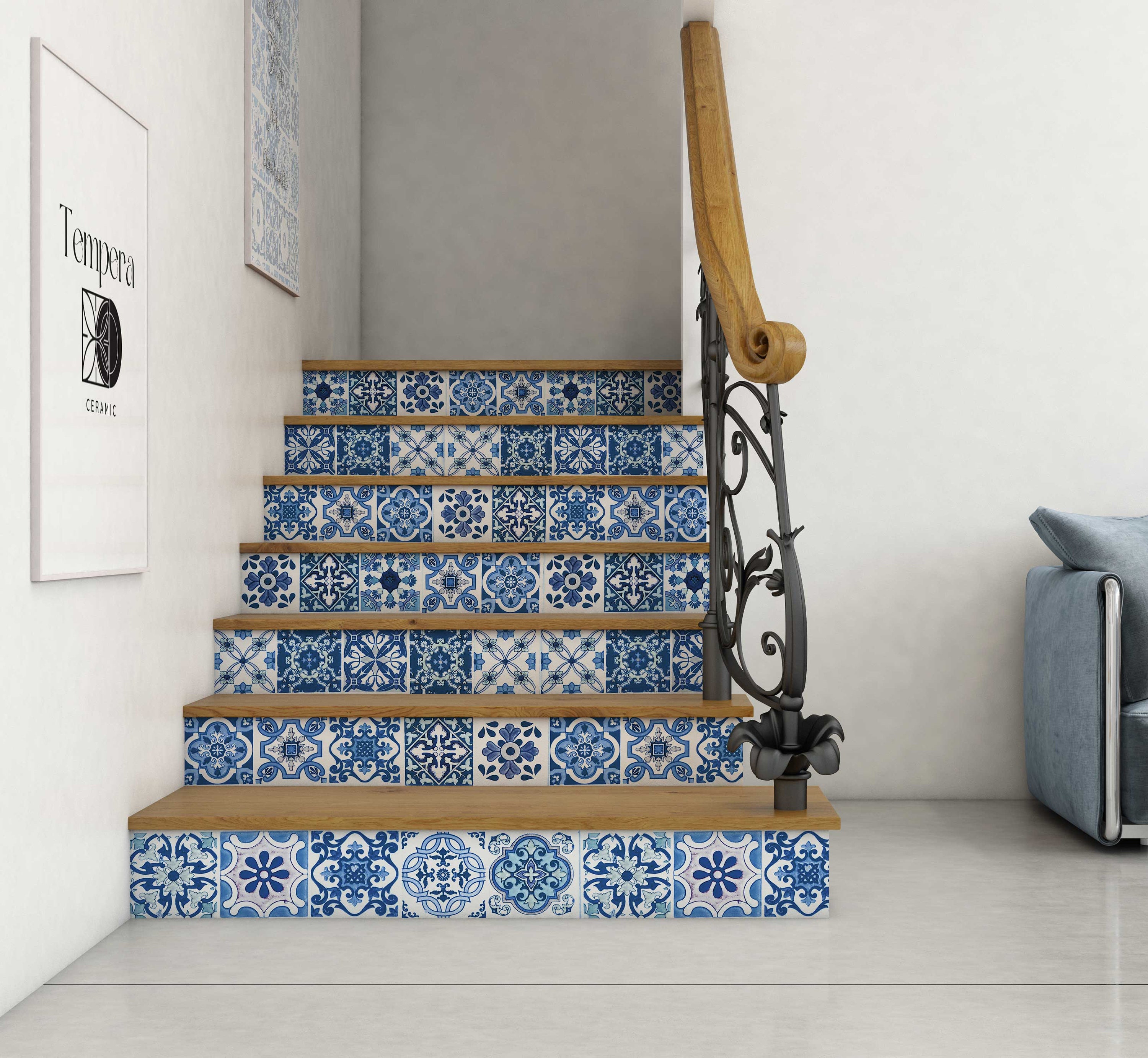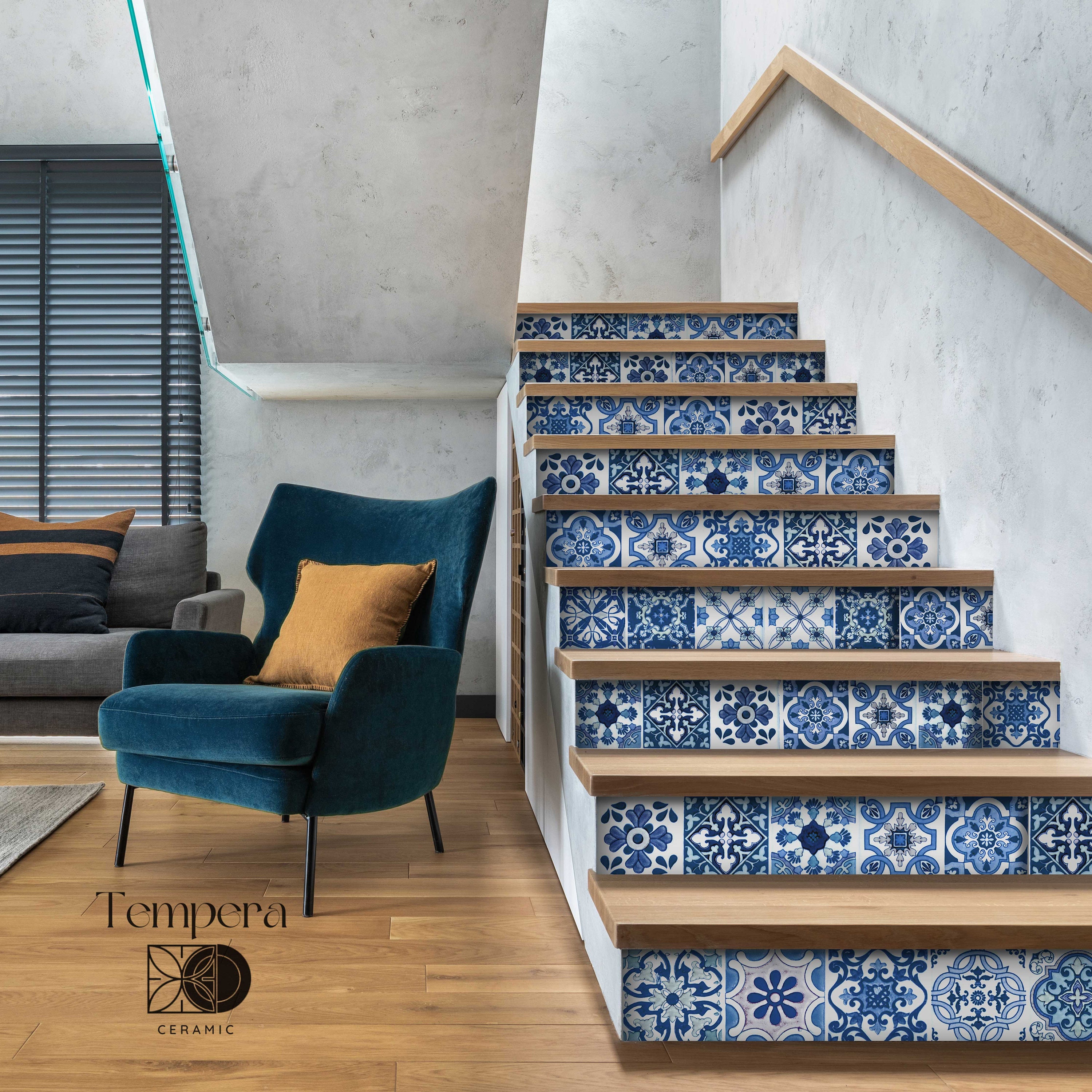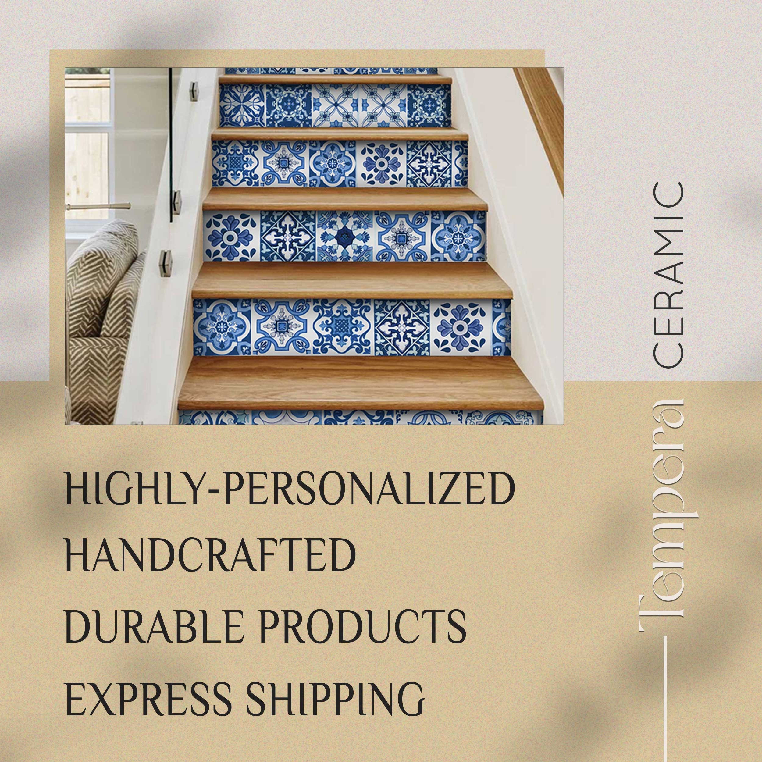 Introducing our mosaic staircase tiles, mediterranean style. Handcrafted and custom-made to fit your space. Our tiles are both unique and made to last. We can offer various customizations of the design and the sizes, or we can bring your vision to life with a completely different and unique look.