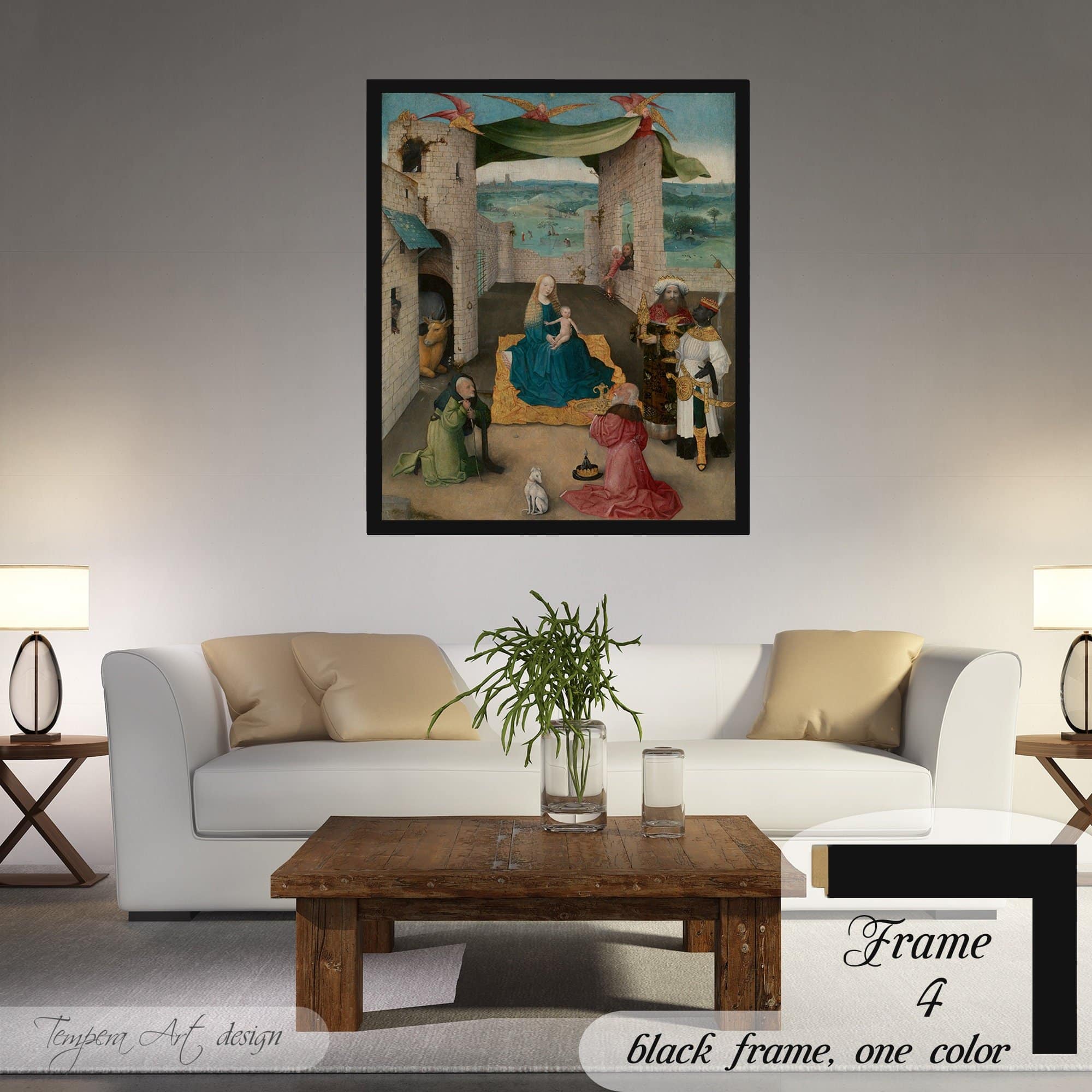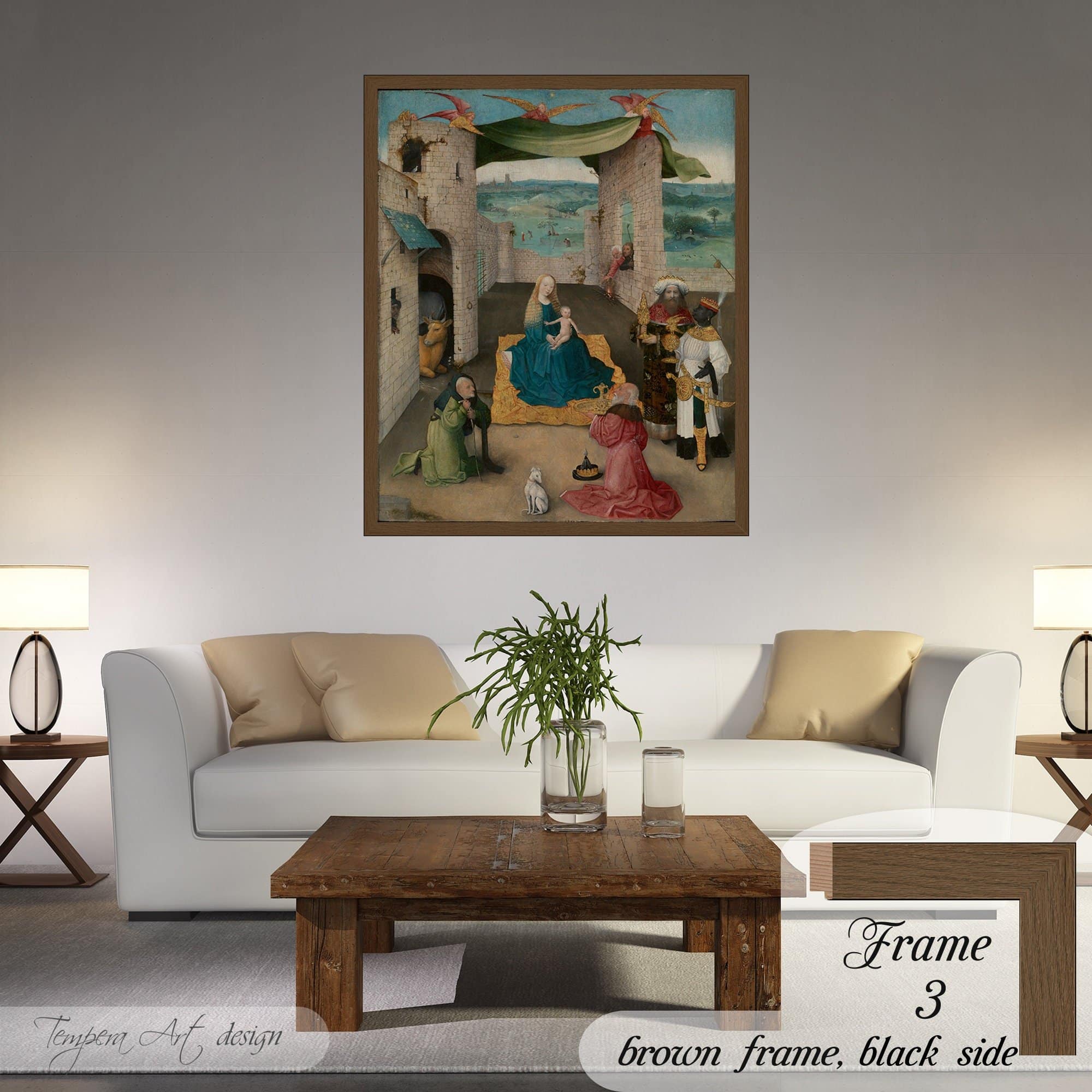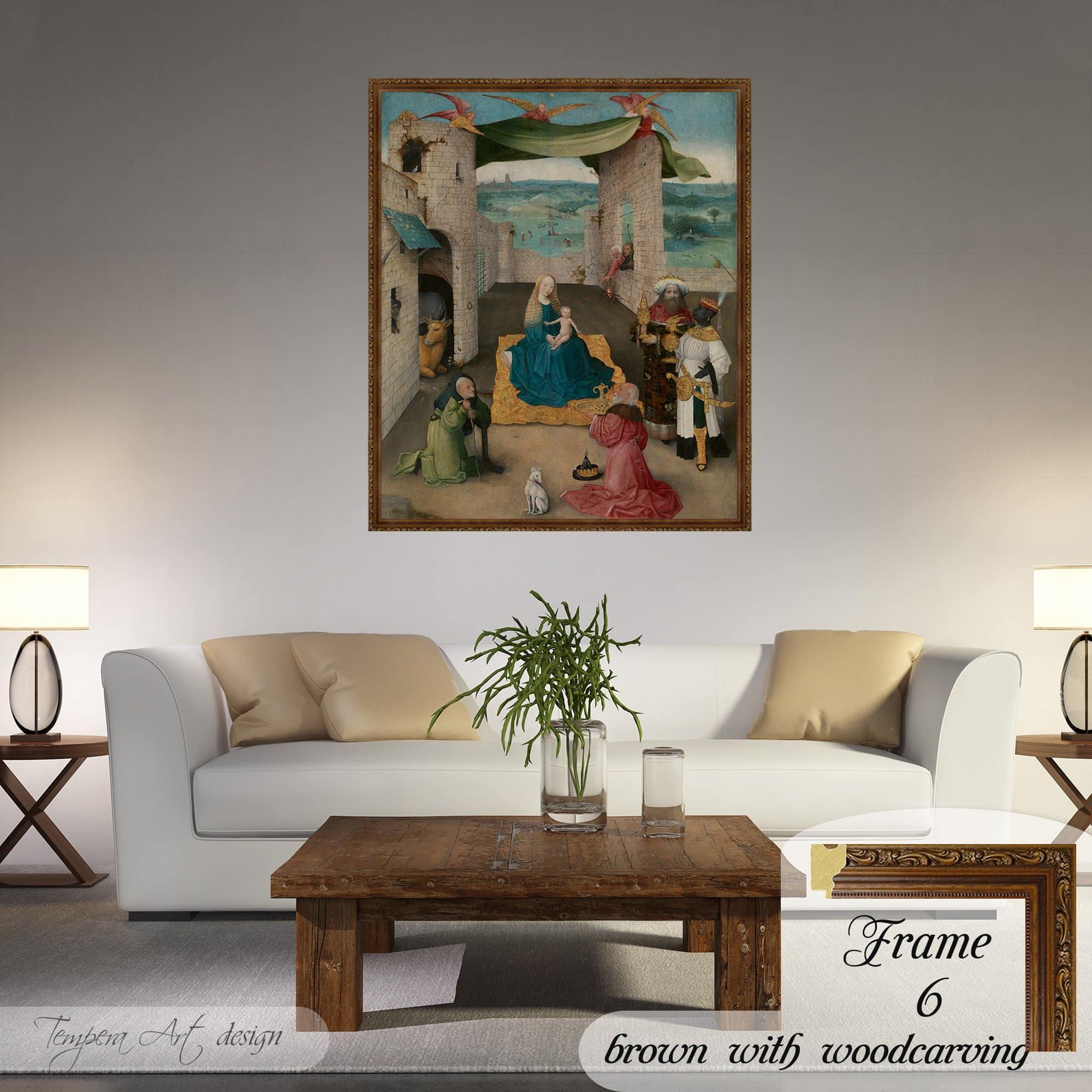 The Adoration of the Magi by Hieronymus Bosch print on canvas ffered with different wooden frames or as an unframed wall art decor.