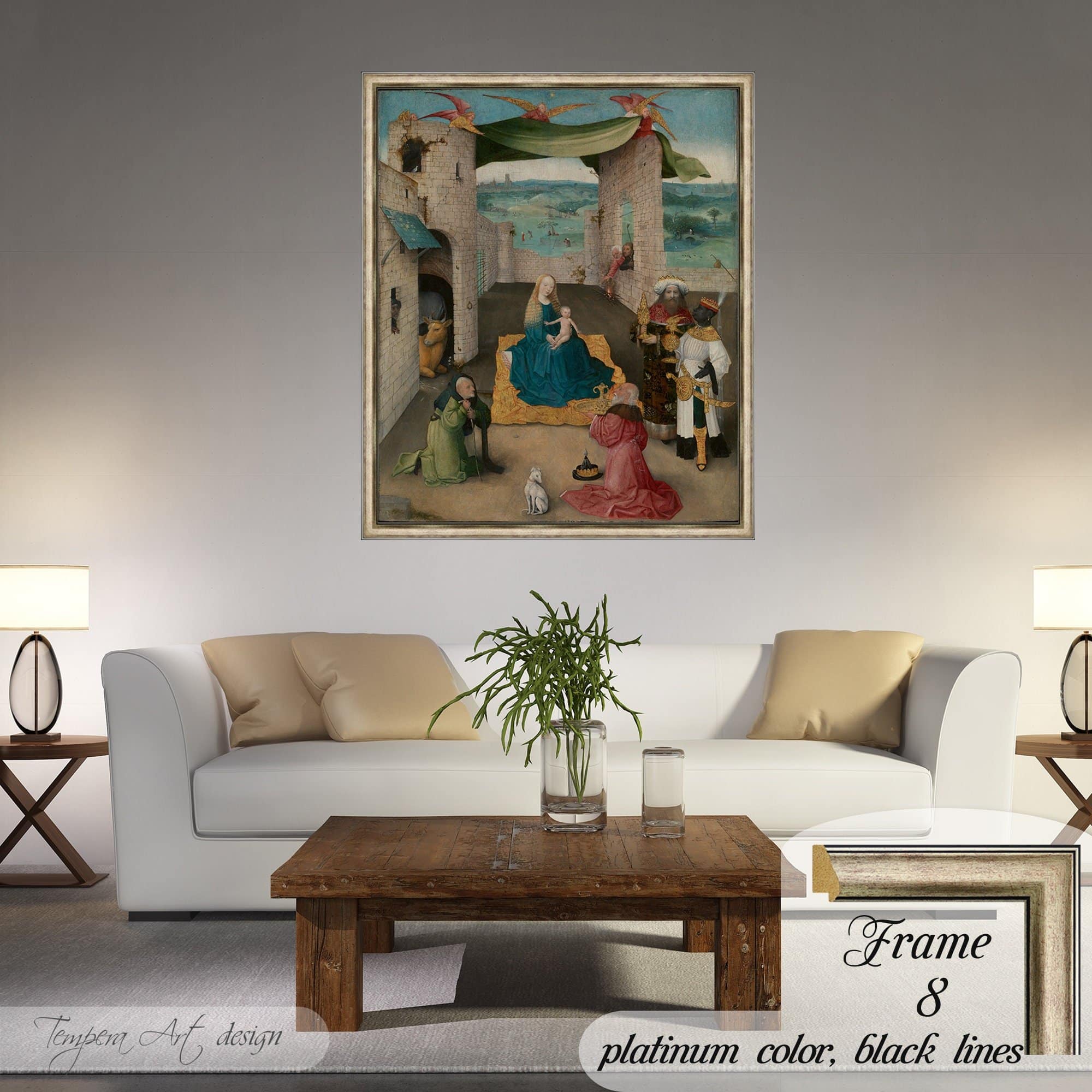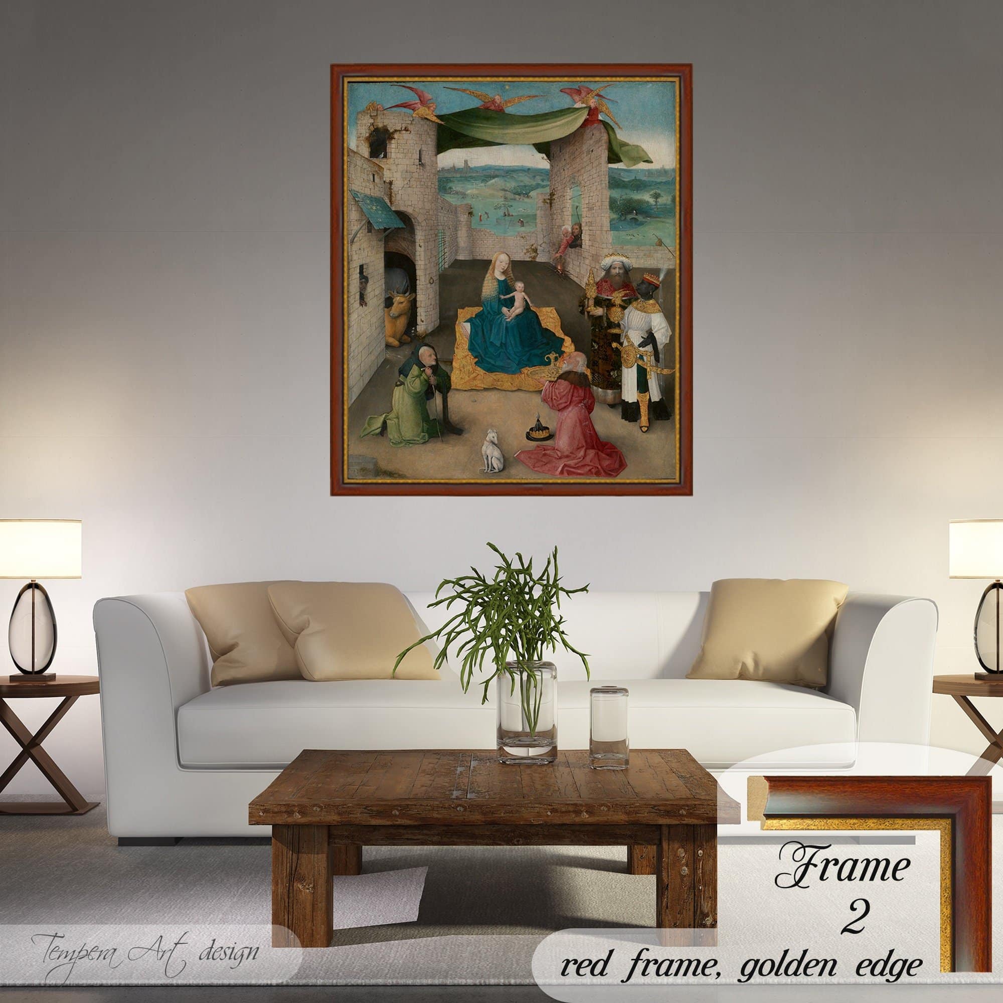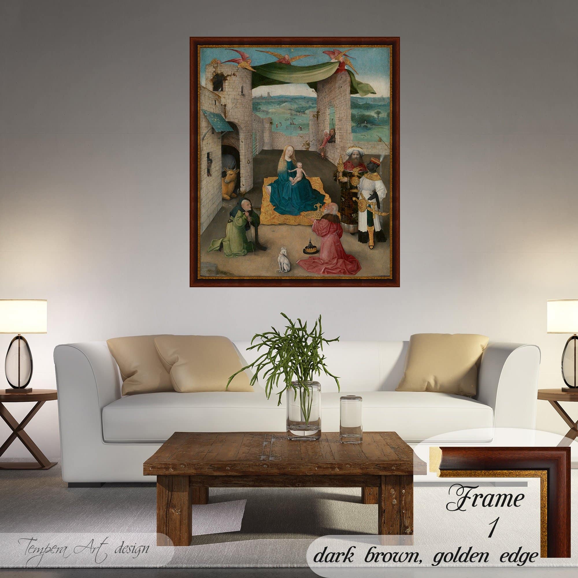 The Adoration of the Magi by Hieronymus Bosch print on canvas ffered with different wooden frames or as an unframed wall art decor.