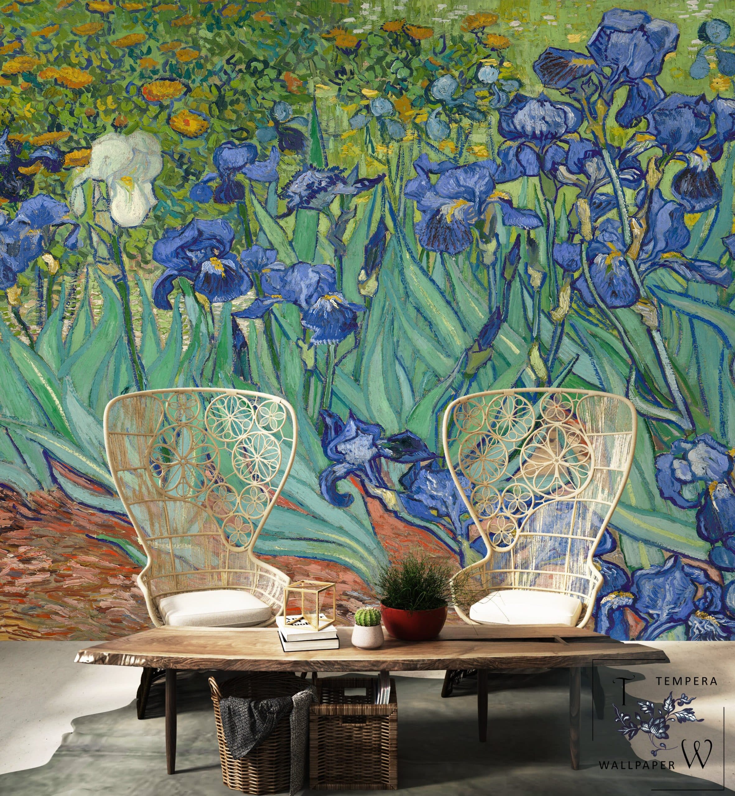 Van Gogh Irises Wallpaper, Removable Wallpaper, Van Gogh Wallpaper Print, Van Gogh Irises. Self-Adhesive or Regular Paper Wallpaper.