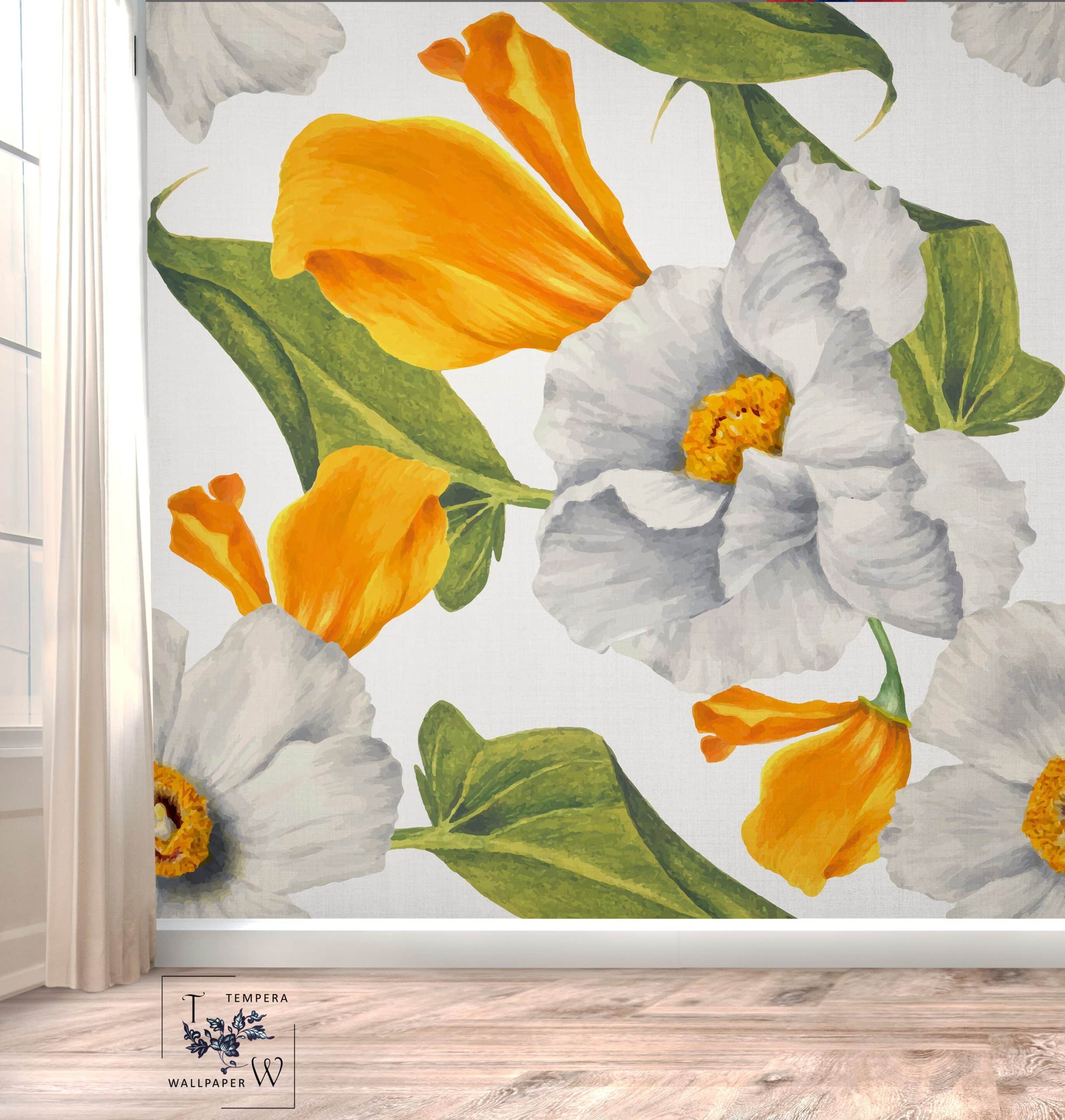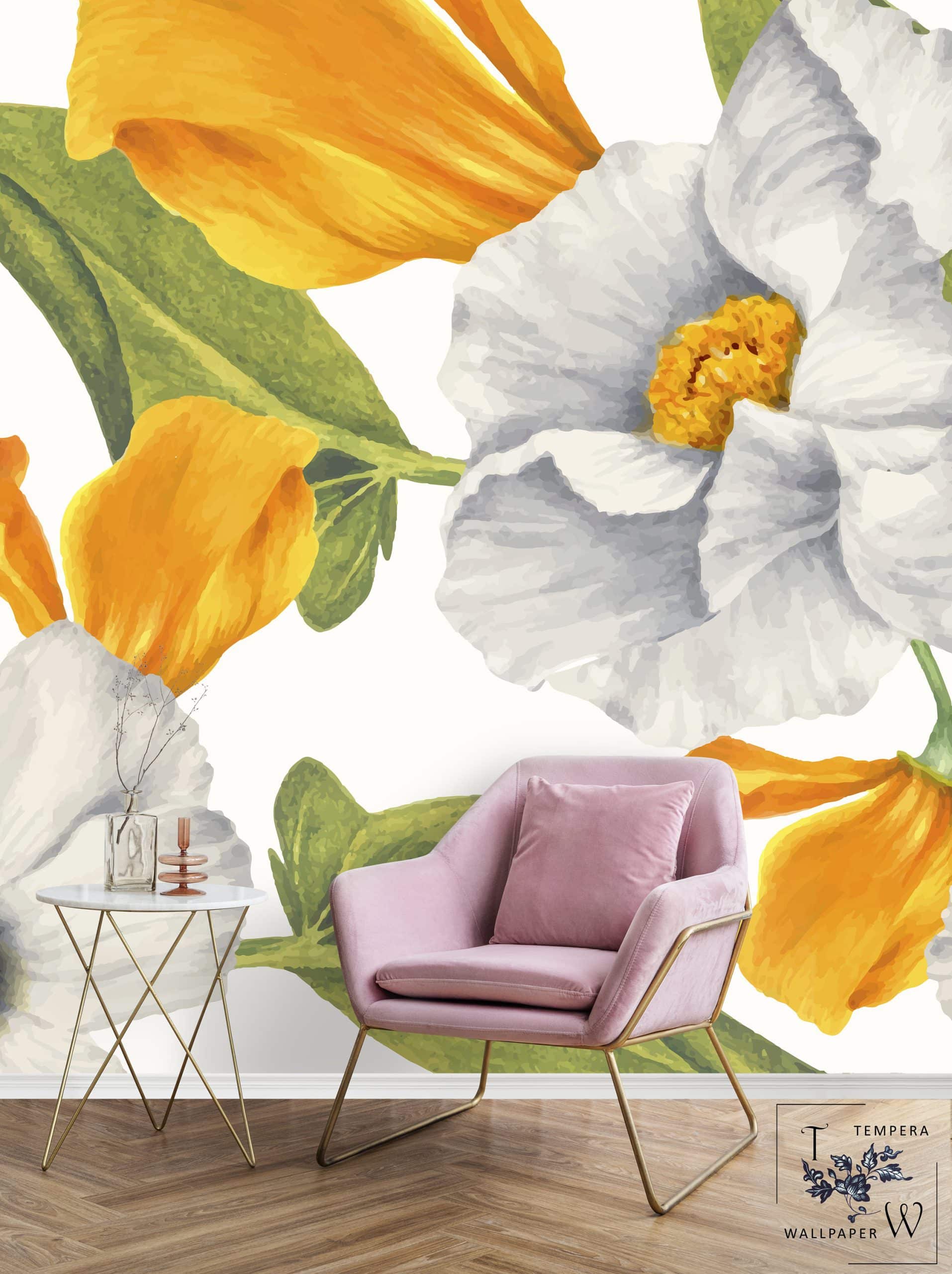 Wallpaper with large flowers. Self-Adhesive or Regular Paper Wallpaper.